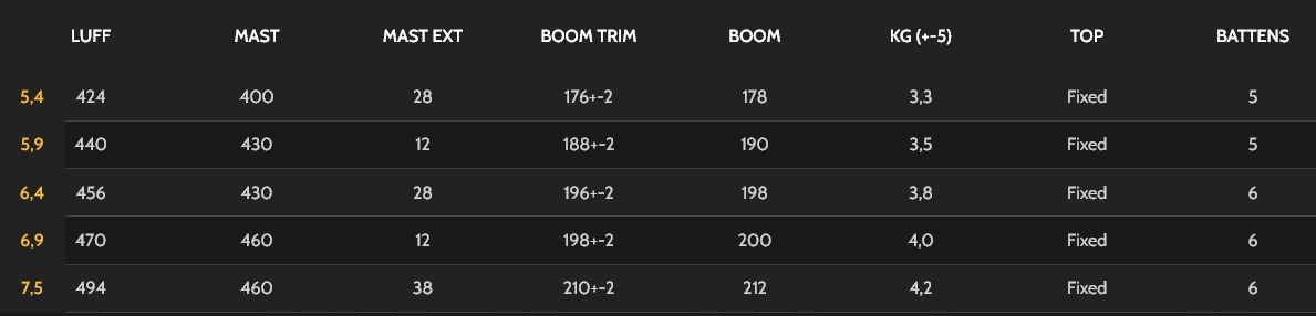 з трьома тюбиками, X-Ply в кишенях для смужок, щоб полегшити розтягнення, а не менше з оздоблювальними деталями, ніж на будь-якій іншій точці-7 вітрила, AC-F-це проведене вітрило, з високою міцністю, щоб протистояти неминучій шкоді та потертостях, які проміжувались під час досвіду розвитку.