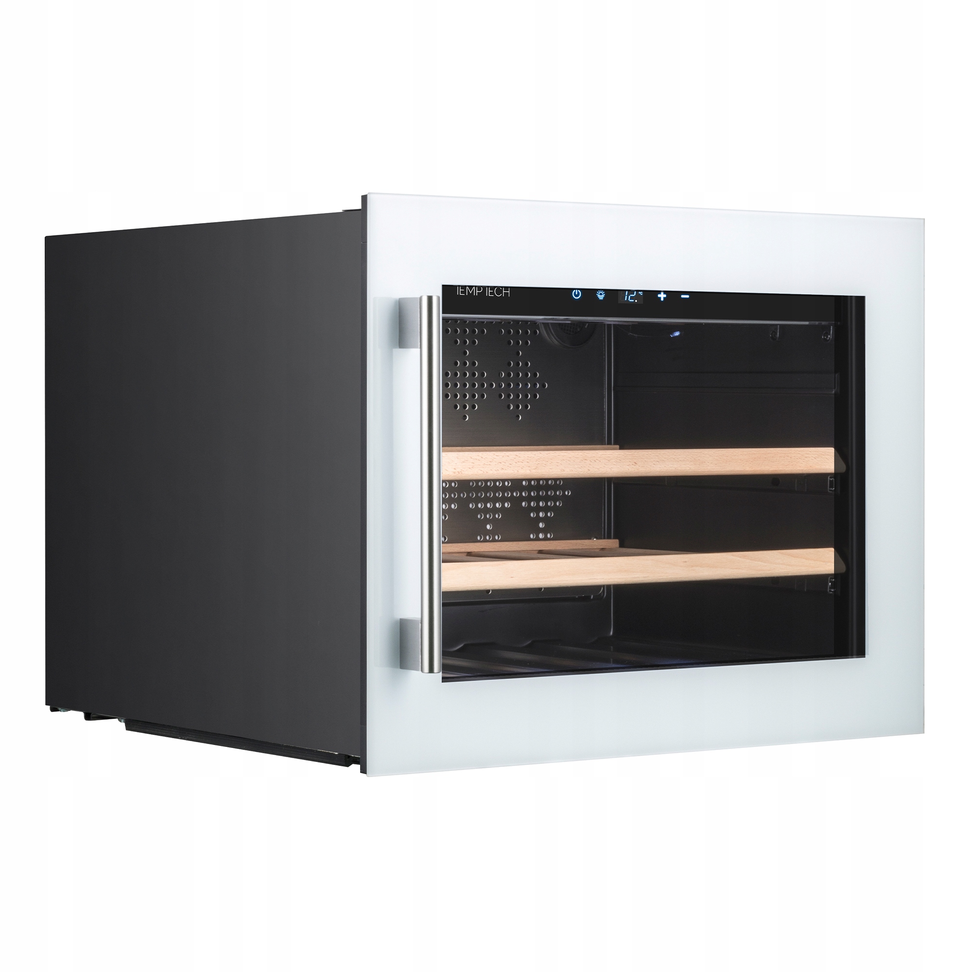 Стильний дизайн із білою скляною передньою частиною, висувними полицями з букового дерева та білим внутрішнім світлодіодним освітленням. Завдяки сенсорній панелі та цифровому дисплею ви повністю контролюєте температуру та освітлення.