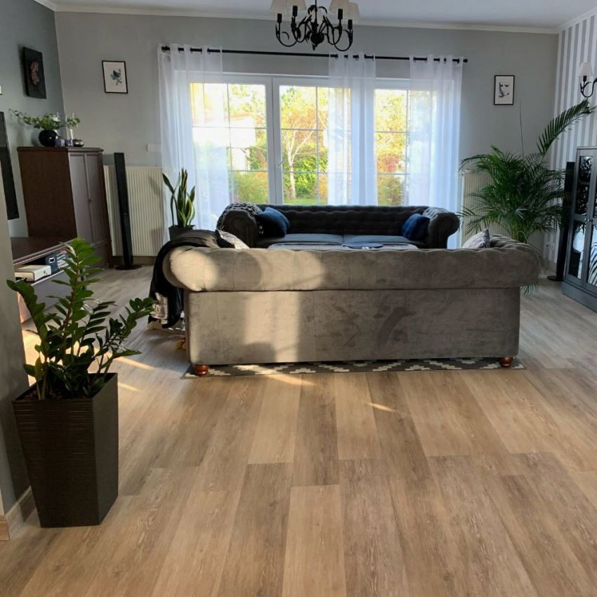 Вінілові підлоги Bestlaminate Vinduri в кольорі пісочний дуб оживлять будь-яку кімнату. Ці водонепроникні та міцні підлоги виготовляються за технологією жорсткого сердечника SPC з прикріпленою підкладкою - новинка на польському ринку. Підлога Bestlaminate Vinduri, безумовно, є кращим вибором, ніж традиційні ламіновані панелі або підлога LVT. Підлога SPC стійка до води та вологи, а також тепла, проста в монтажі та зручна у використанні. Завдяки додатковому керамічному захисному покриттю вінілові панелі стійкі до плям і виглядатимуть як нові протягом багатьох років.