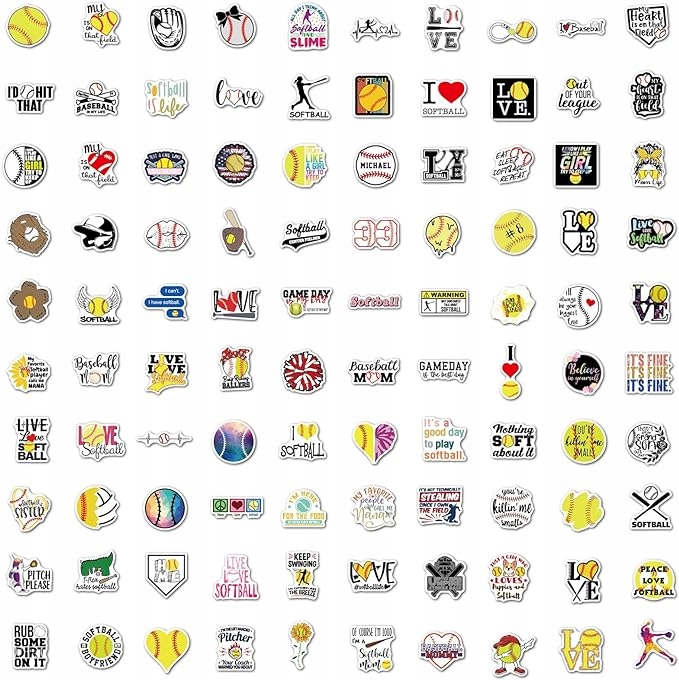 - �Унікальний дизайн наклейки для софтболу: 100 наклейок для софтболу, кожна симпатична спортивна наклейка є унікальною. Ніяких повторів і випадковості. 100 різних візерунків для задоволення ваших декоративних потреб. Покажіть свою персоналізацію.