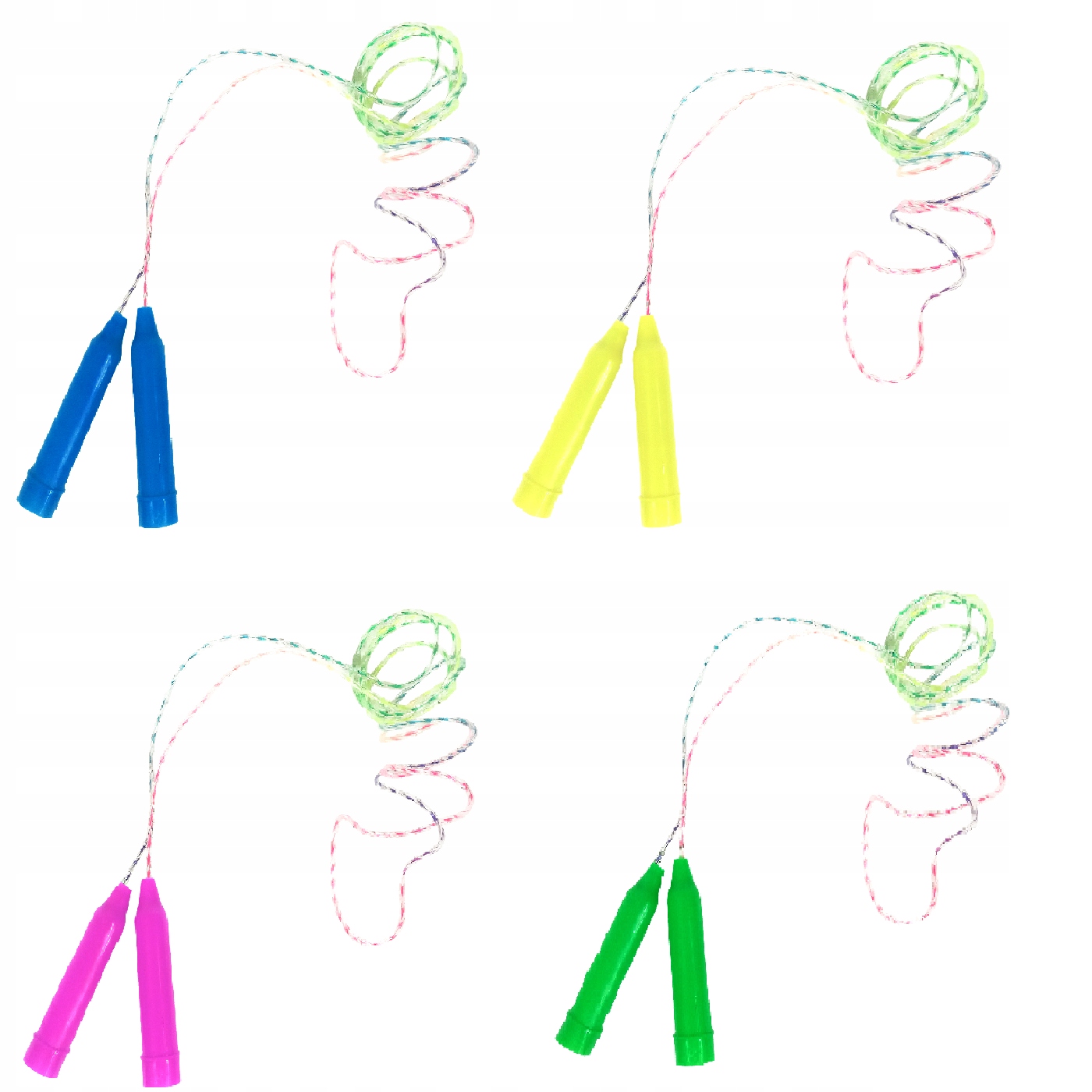 - скакалка доступна з ручками рожевого, синього, жовтого та зеленого кольорів