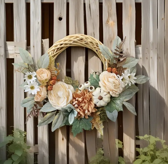 Стильний вінок - це ідеальне оздоблення, яке підкреслить унікальний характер вашого будинку. Це чудово працює як прикраса для вхідних дверей, стіни, вікна, а також очерету для столу.