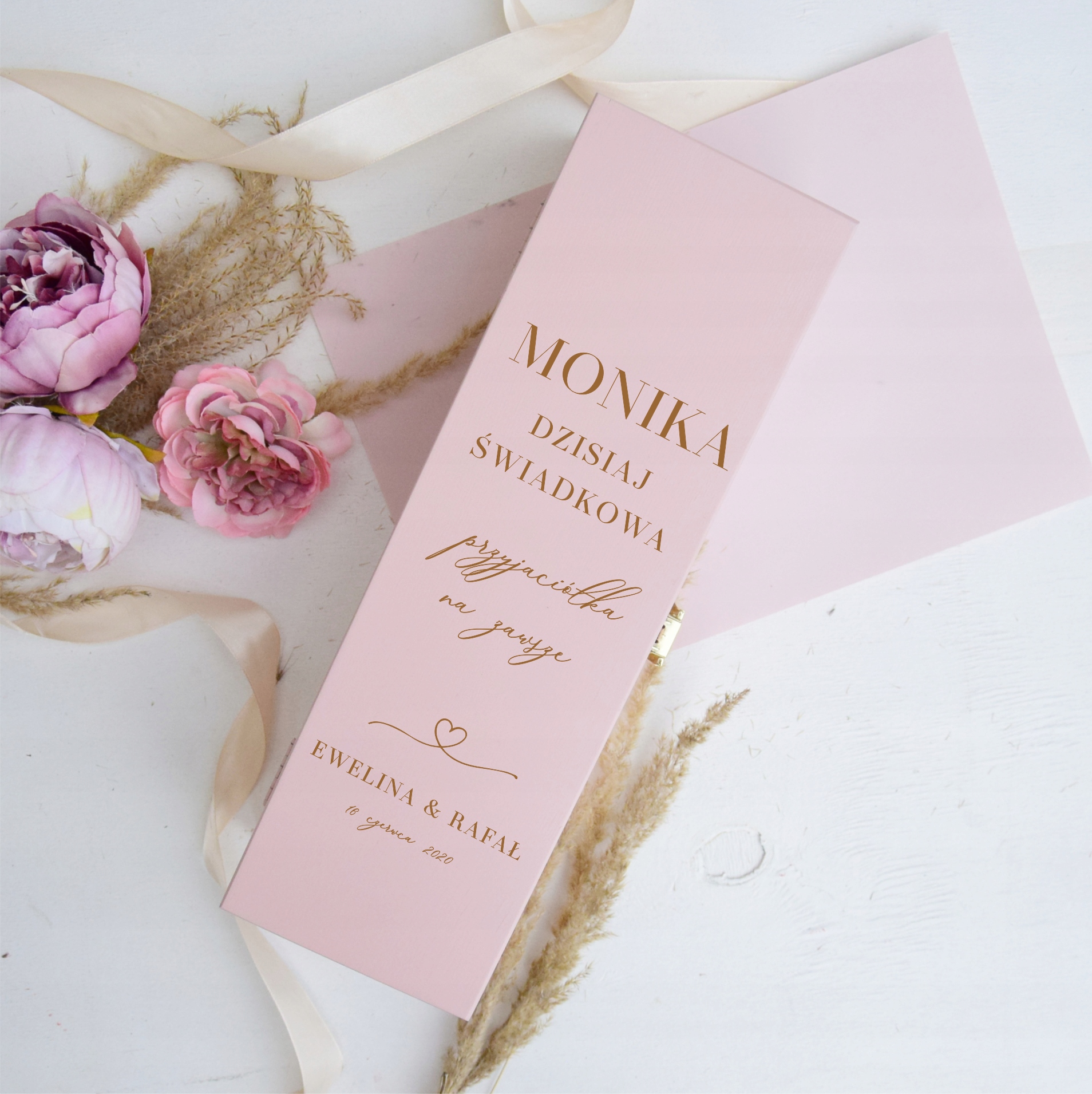 Вино, укладене в красиву дерев'яну коробку - чудовий спосіб висловити свої справжні почуття!Без свідків, батьків, кумів весілля не відбудеться, і хоча всі знають, що воно відіграє надзвичайно важливу роль, тому це того варте. Подякуйте їм за це, подарувавши їм вишуканий подарунок. Наша пропозиція коробки для алкоголю в кольорі на ваш вибір.