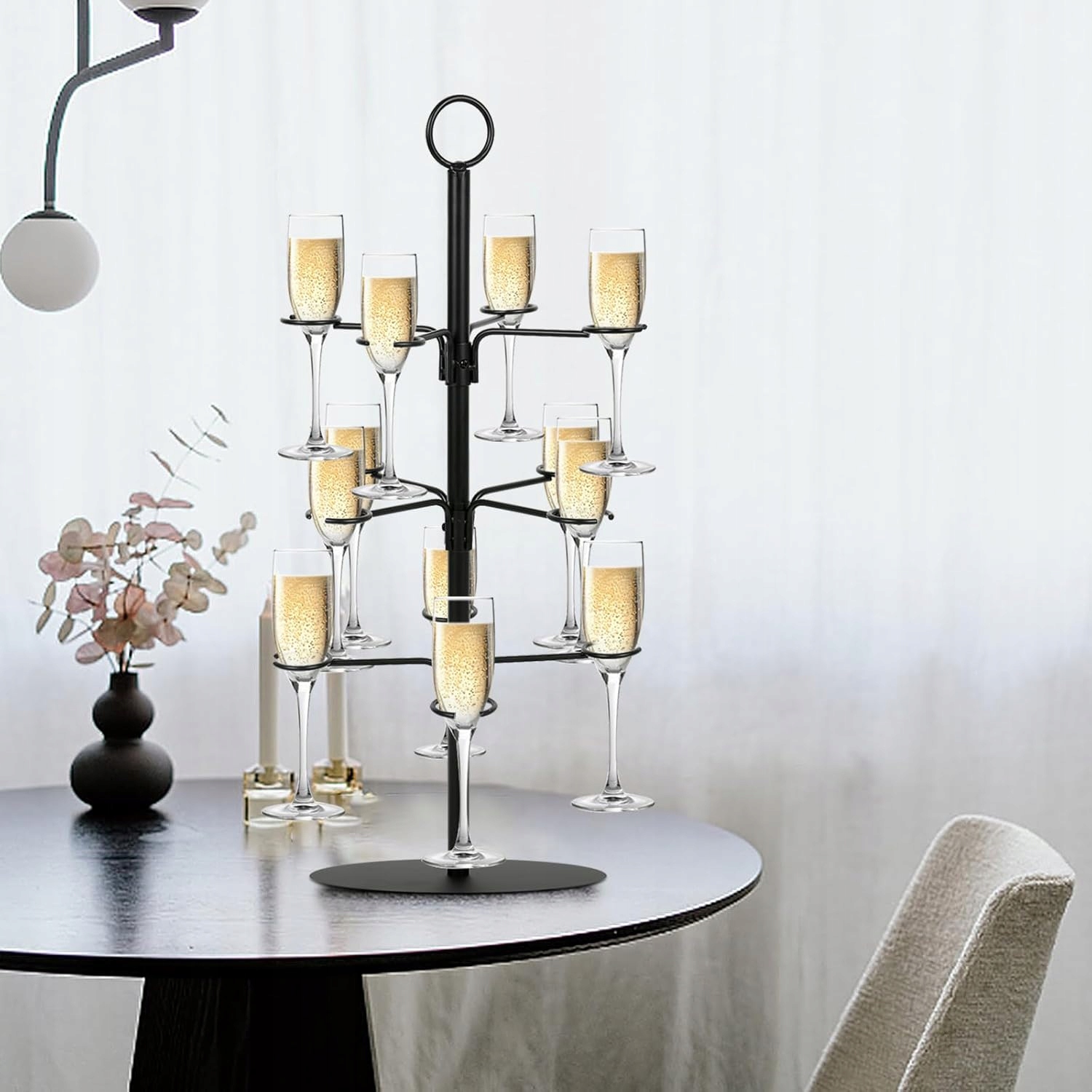 Ця елегантна скляна підставка - це практичне та ефективне доповнення, яке буде чудово працювати під час різних урочистостей - від дому до більших подій. Він може вмістити до 12 склянок, ідеально підходить для вина, шампанського або барвистих коктейлів.