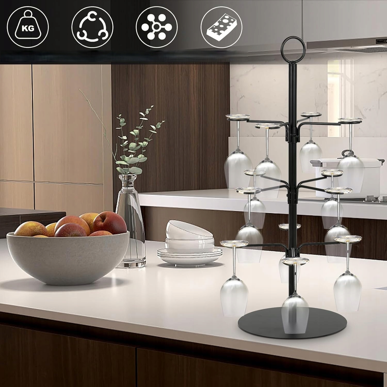 Дерево дерева для винних келихів 3 рівнів 12 залізних ручок