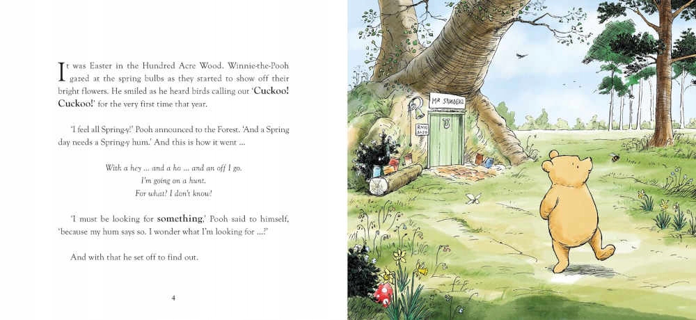 Ця книга з малюнками Вінні-Пух-талановита автор Джейн Ріордан. Це допомагає дітям та всім шанувальникам Пуха та його друзів відсвяткувати чудеса весняного часу та особливо магію Великодня! У ньому представлені красиві, барвисті зображення, встановлені в сотні акрів деревини, створеної кваліфікованим ілюстратором Ендрю Грей.