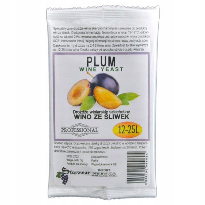 Чудові спеціалізовані винні дріжджі WINE YEAST PLUM призначені для виробництва 25 літрів сливового вина.