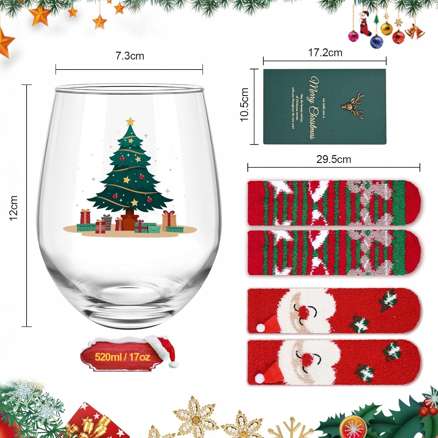 - Преміальна якість: Красиві різдвяні винні келихи з різдвяними елементами виготовлені з стабільних, BFA -безтурботних. У них широке і стабільне дно, опукле тіло і гладкий край рота. Унікальний та точний друк ілюстрації залишається довше. Різдвяні шкарпетки виготовлені з 98% поліефірного волокна, дуже приємно носити. Вони красиві та гнучкі, більшість людей можуть їх носити.