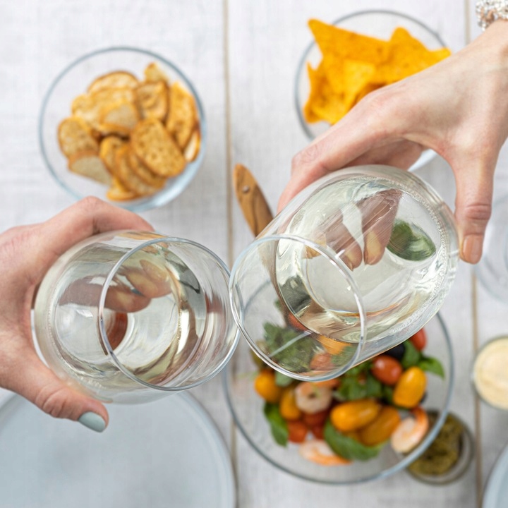Встановити 4 склянки Софії за допомогою скляного набору - це пропозиція для людей, які шукають практичні та естетичні страви для подачі різних напоїв. Їх універсальна форма робить їх ідеальними для червоного та білого вина , але вони також будуть добре працювати під час подачі крижаних напоїв, лимонаду, соки або мінеральної води . Окуляри відрізняються високою ємністю, і їх проста, сучасна форма виглядає чудово на кожному столі.