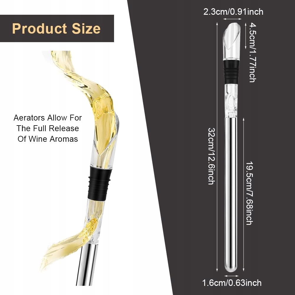 Винна охолоджуюча стрижня : Цей аератор для винних келихів виготовлений з 304 нержавіючої сталі, призначеної для контакту з їжею та акриловим пластиком. Він компактний і легко зберігати в холодильнику, що змушує вас завжди мати його під рукою. Тримає вино в холодну до 3 годин, не використовуючи кубики льоду. Вам не доведеться знову ставити його в холодильник або контейнер для льоду-це зручно підтримує температуру вина!
