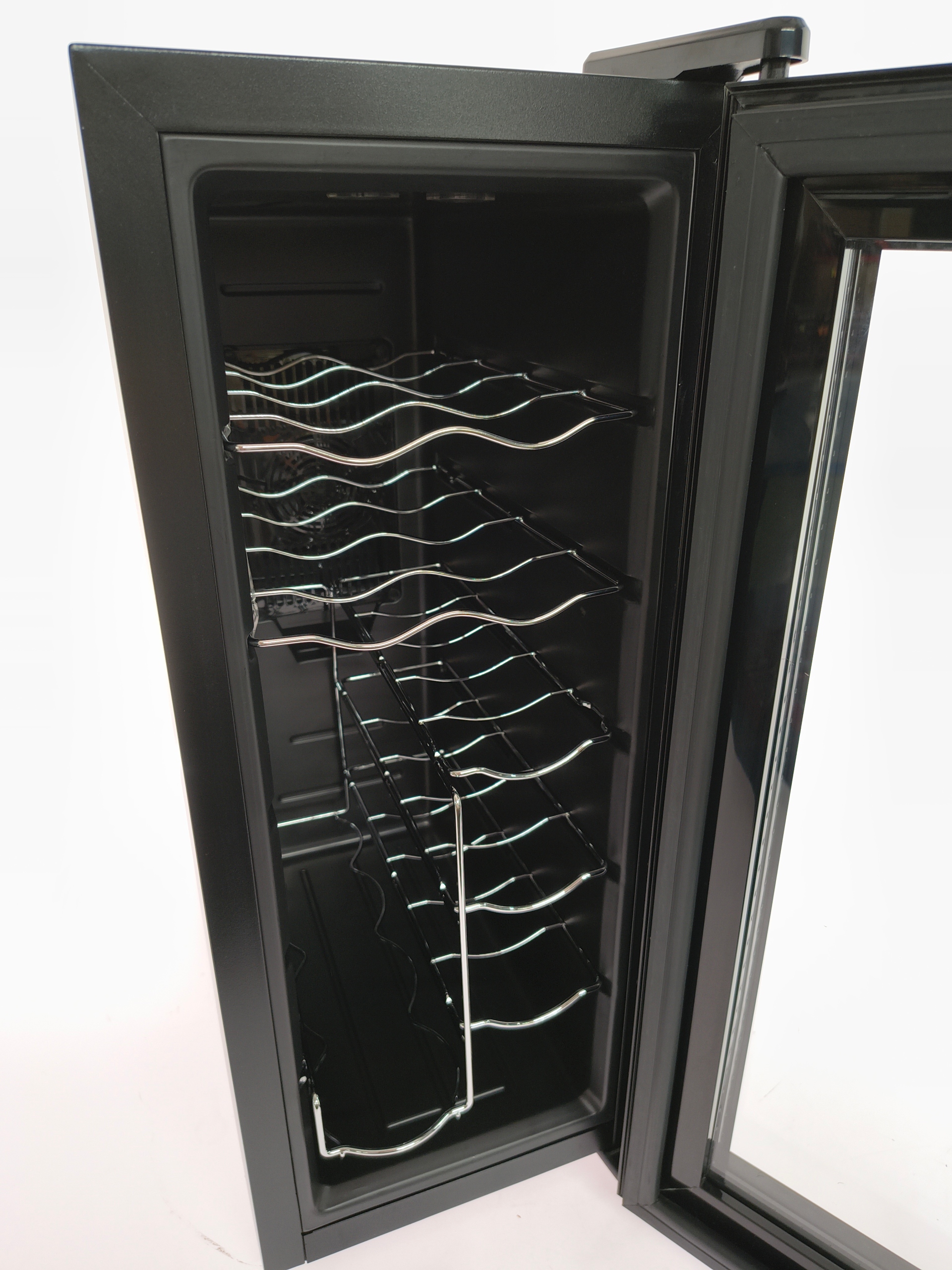 Винний охолоджувач BCW-35A використовує термоелектричну технологію охолодження, яка забезпечує спокійну роботу. Елегантна, чорна обробка, управління за допомогою сенсорного екрана. Компактний розмір матиме 12 пляшок, а електронне регулювання температури підтримувало точний діапазон охолодження в діапазоні 10-18 ° С, оснащений м'яким світлодіодним внутрішнім освітленням та стандартними 5-дротяними поличками, він ідеально підходить для домашніх та комерційних застосувань.