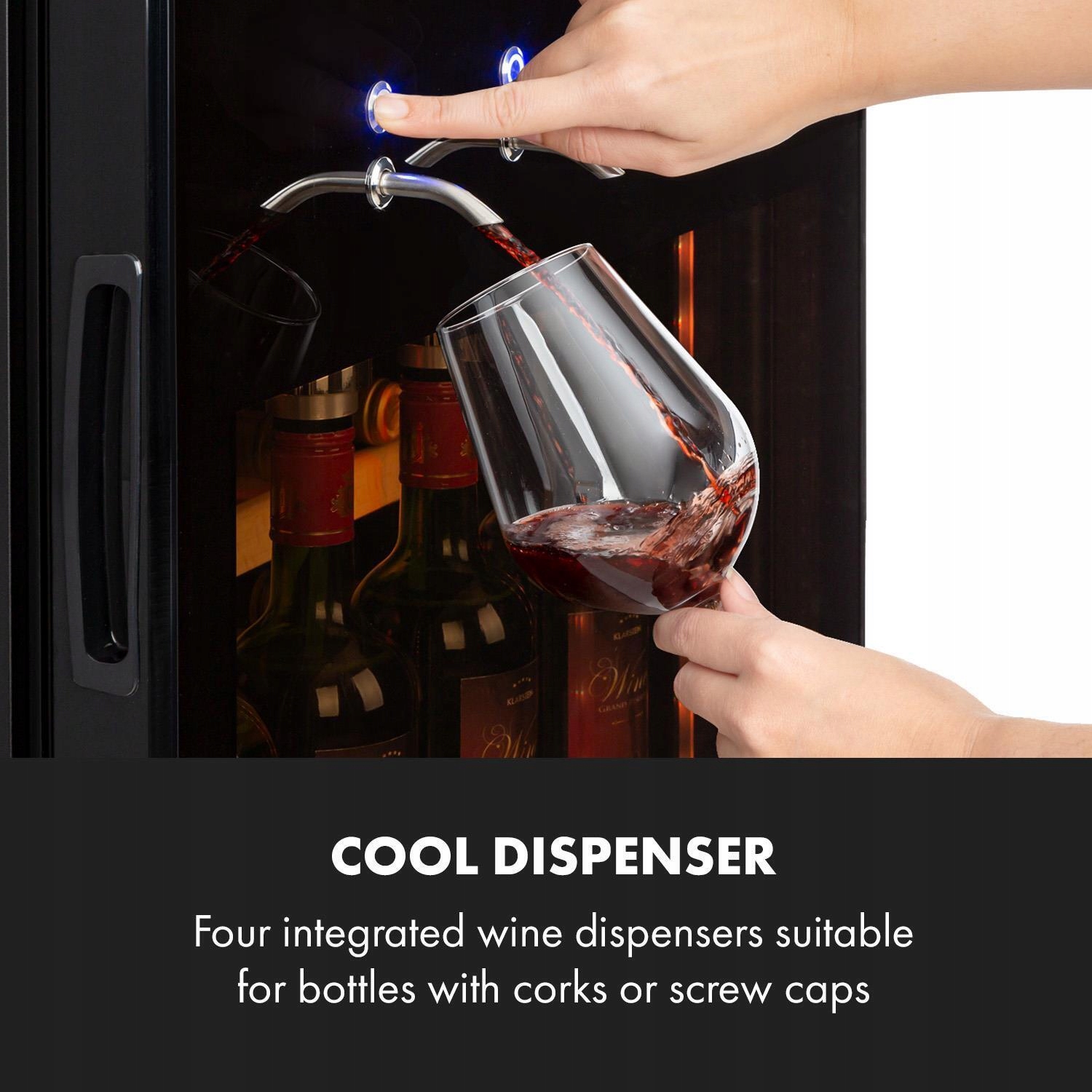 Презентація та насолода в одному: винний охолоджувач First Class 129 із диспенсером від Klarstein є ідеальним рішенням для гастрономії та виноробень, щоб продавати вино на келихи з ідеальною температурою пиття, а також ідеально підходить для використання в буфетах із самообслуговуванням. .