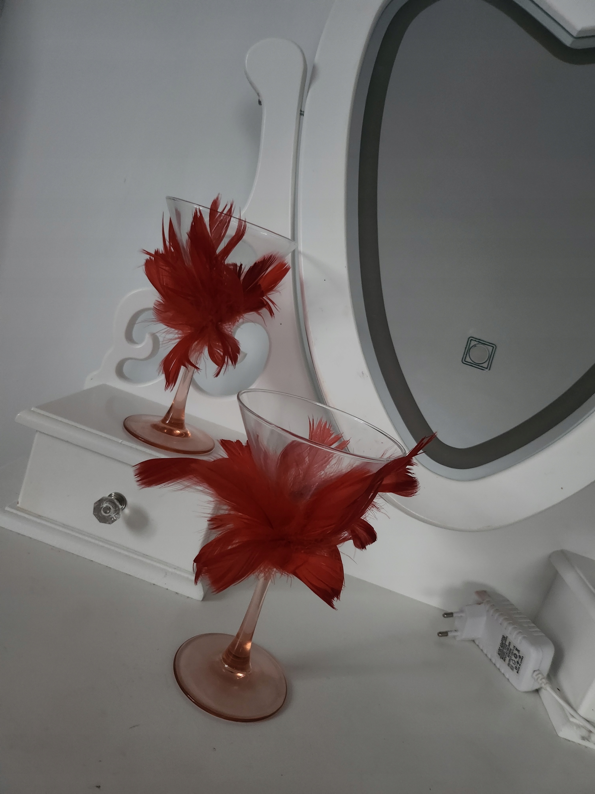 - окуляри упаковані в декоративну упаковку серця. 4 Скло на нозі знизу, ніжний безбарвний колір