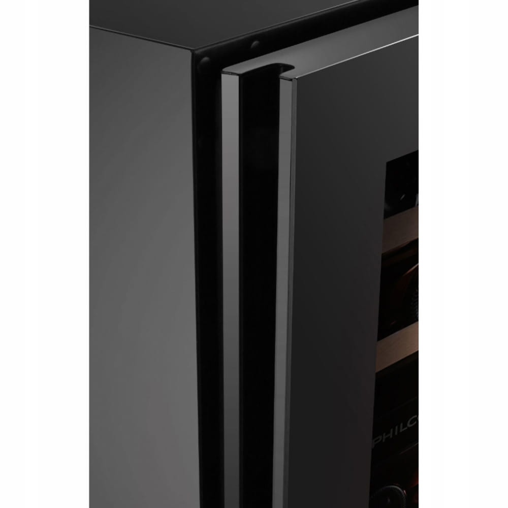 Двозонна, компресорна, сенсорна, винна шафа Philco PW 17 GDFB на 17 пляшок з висувними полицями з букового дерева. Винна шафа оснащена потрійними скляними дверцятами із захистом від ультрафіолету та спеціально розміщеним компресором для зменшення вібрації, нагрівачем для компенсації коливань температури навколишнього середовища та дисплеєм. Завдяки знімному цоколю можна навіть вбудувати або побудувати винний льох. У цій моделі є функція Winter Care - система frost-free, яка запобігає будь-якому обмерзанню. Система Frost-free: за допомогою нагріву PTC внутрішня температура автоматично підвищується, коли зовнішня температура падає, щоб зменшити споживання енергії, водночас ця функція запобігає запотіванню скла дверей.
