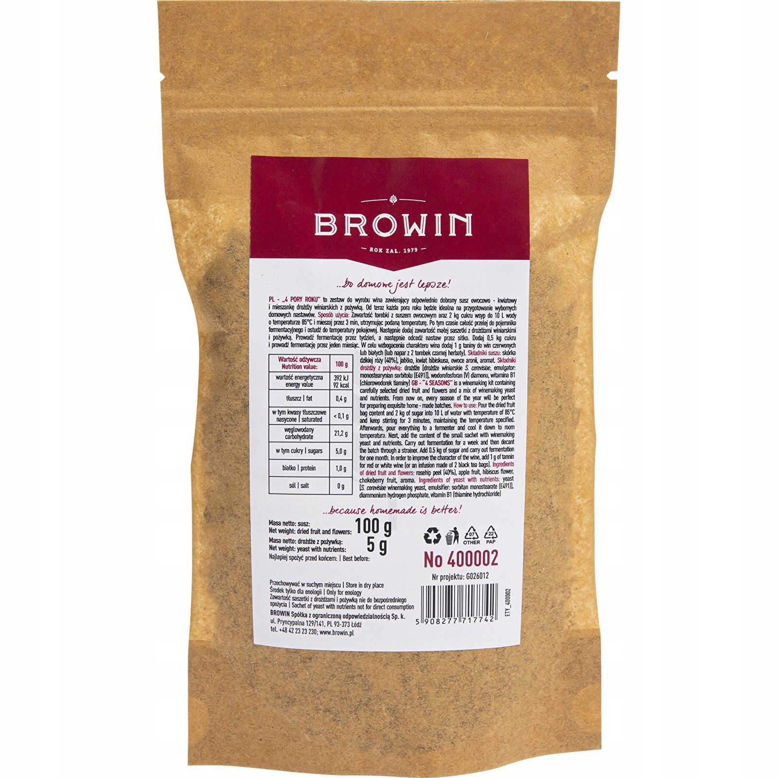 4 СЕЗОНИ - дика троянда - це набір для виготовлення вина, що містить ретельно відібрані сухофрукти та квіти та суміш винних дріжджів з поживними речовинами. Відтепер кожна пора року буде ідеальною для приготування смачних домашніх страв.