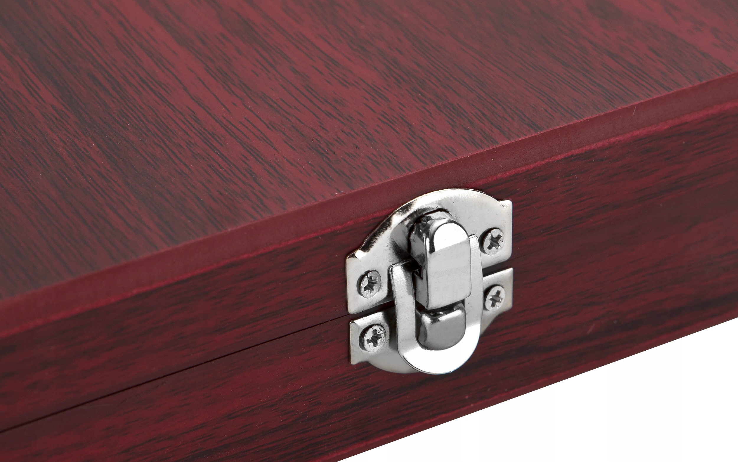 Набір аксесуарів упакований у дерев'яну стильну валізу на замку.