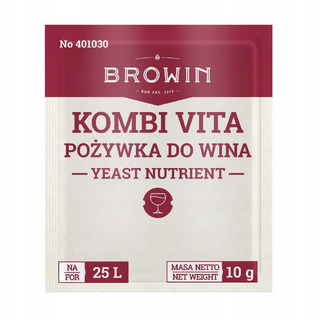 Завдяки використанню Kombi Vita Nutrient ми досягаємо належного розмноження дріжджів, швидкого початку бродіння та повного розгасання цукру. міститься у фруктах і додається під час виробництва вина. Вітамін B1 стимулює ріст дріжджів і є сильним активатором бродіння. Клітинні стінки дріжджів прискорюють розмноження біомаси, є джерелом стеролів, жирних кислот і мікроелементів - магнію і марганцю. Вони адсорбують речовини, які перешкоджають бродінню.