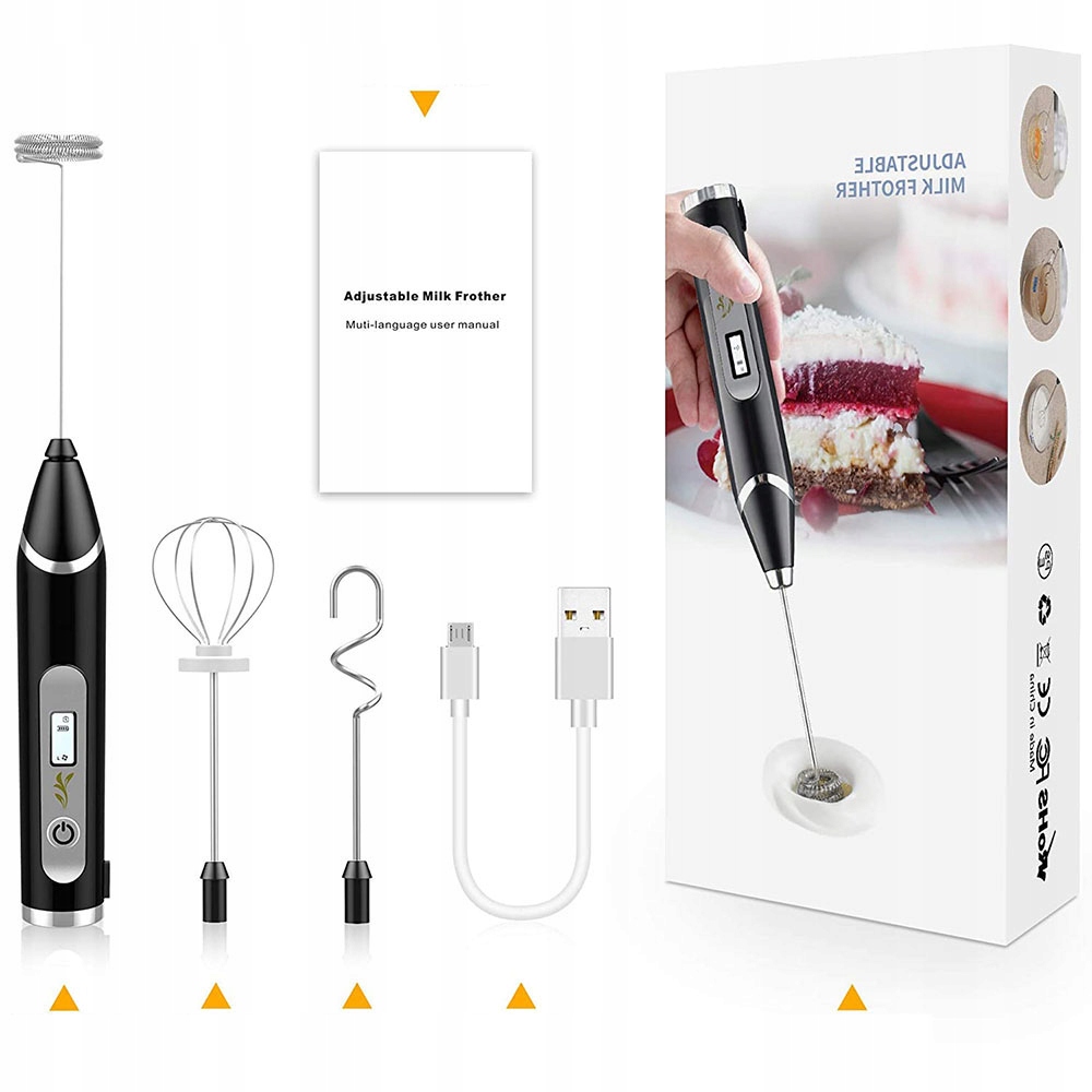 Є доступні 3 універсальні головки. Насадка для спінювання кави знімна та замінна для різноманітного використання. Виберіть головку з віночком із пружиною для ідеальної молочної піни або кулькову головку для збивання яєць. Ви також можете використовувати повітряну головку для збивання для кращого спінювання, якщо використовуєте велику ємність.