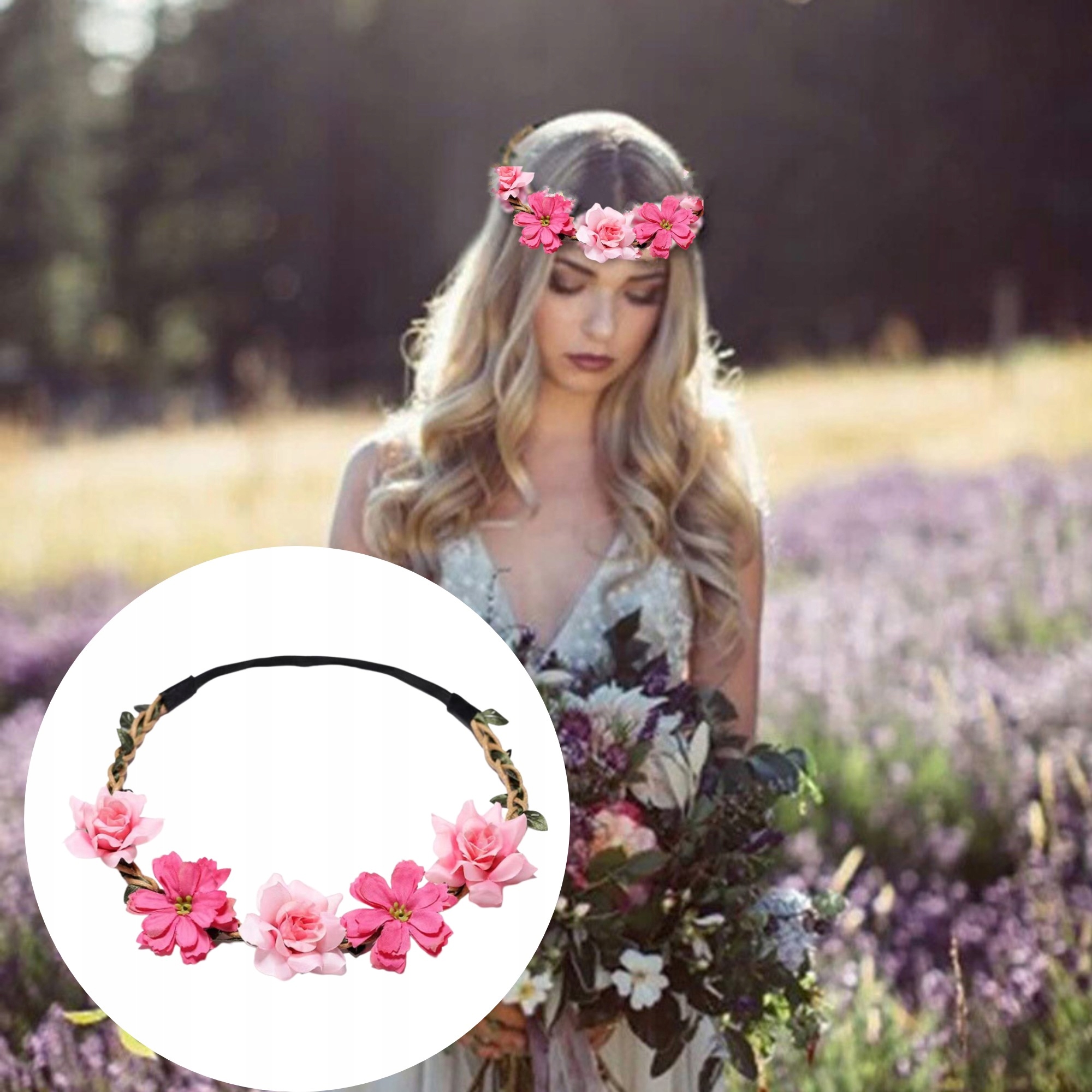 ВІНОК, ПОВ'ЯЗКА, КВІТКА, РОЖЕВІ КВІТИ, МІСТ, ГУМКА