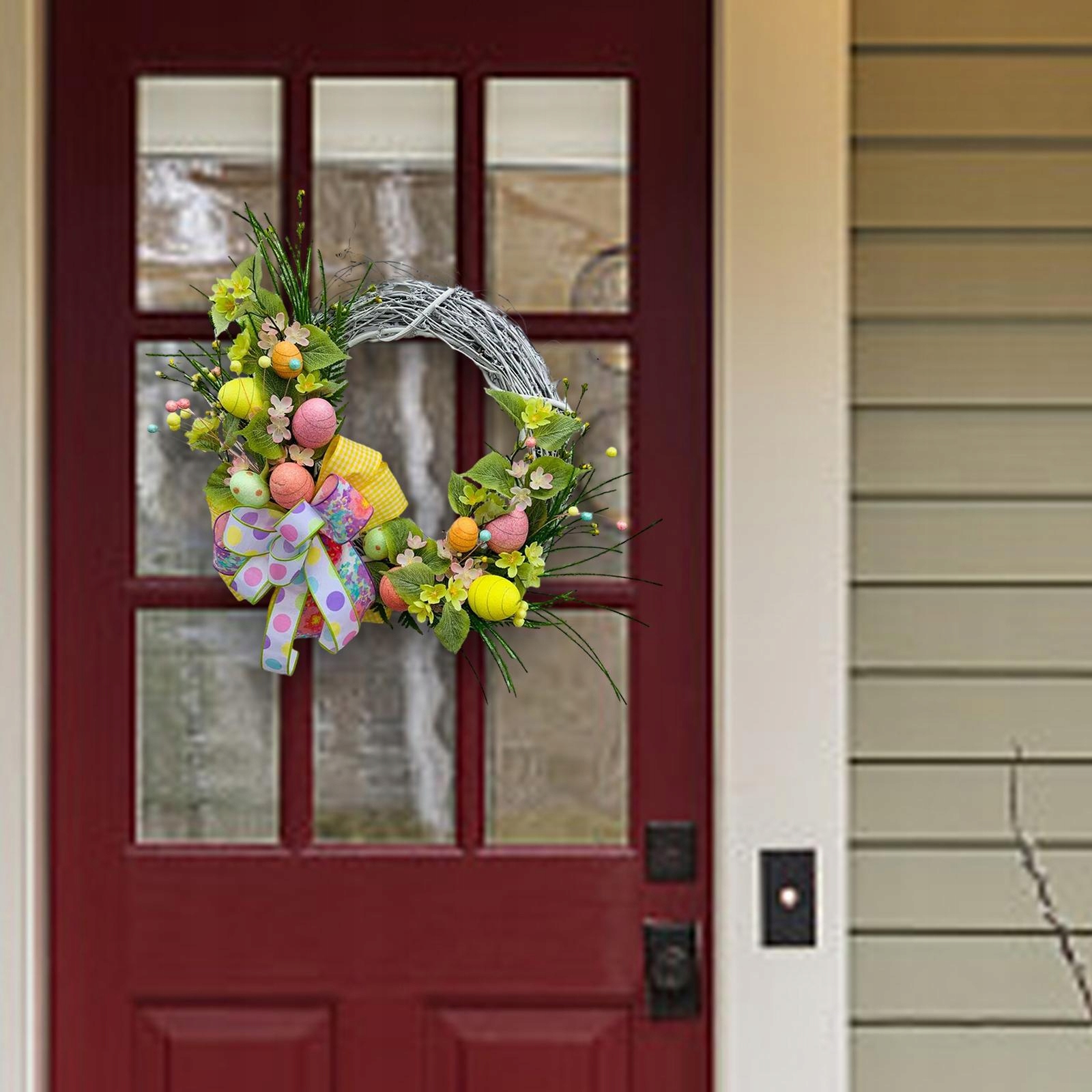 [Великодні прикраси]: правильно підібраний великодній вінок для вхідних дверей може привернути увагу оточуючих здалеку та справляйте враження на сусідів і перехожих.