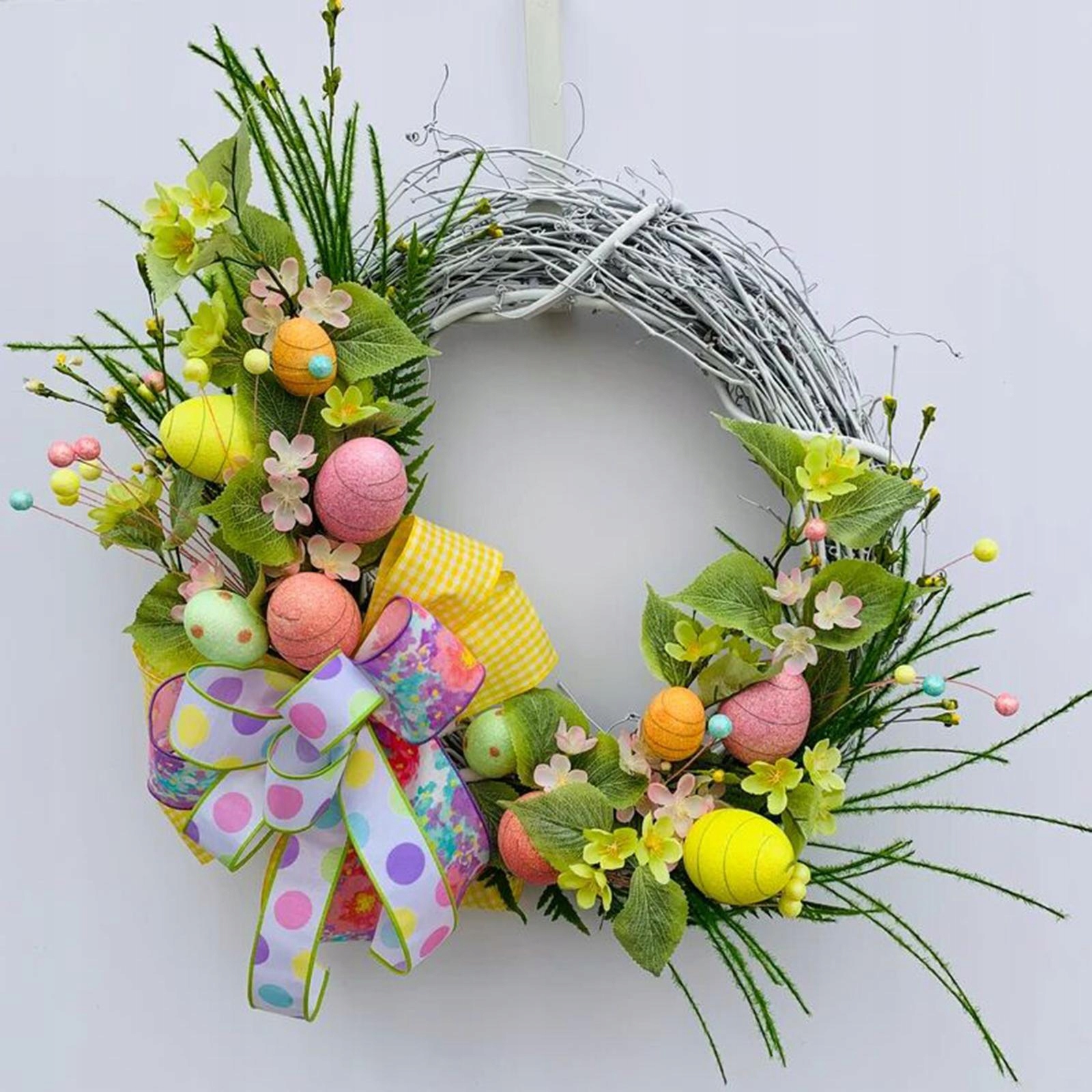 [Стійкий матеріал]: Пасхальний вінок виготовлений із спіненого матеріалу, який є міцним, багаторазовим і може використовуватися протягом тривалого часу.