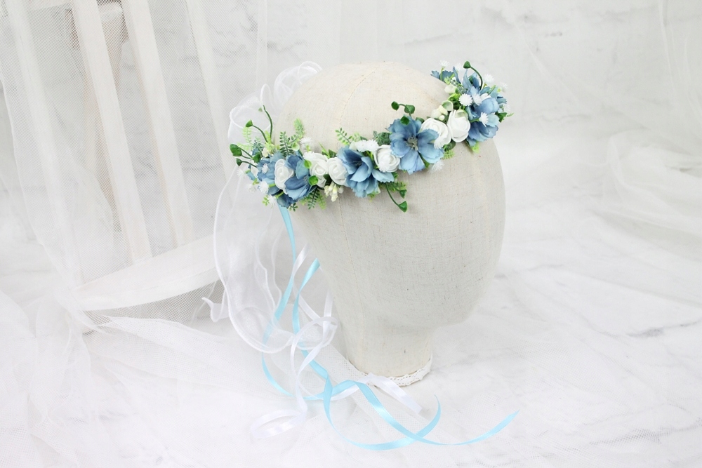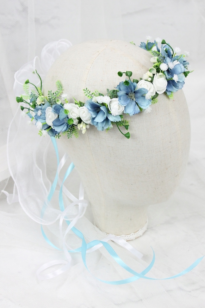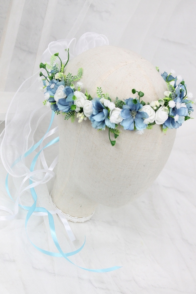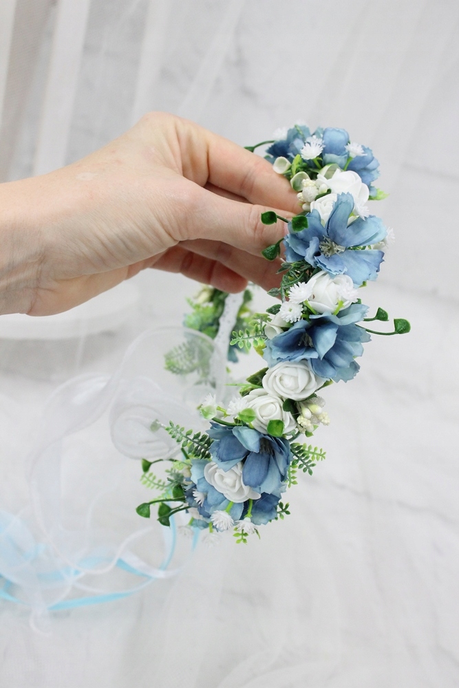 Вінок для причастя, квітковий вінок для причастя з блакитним бантом