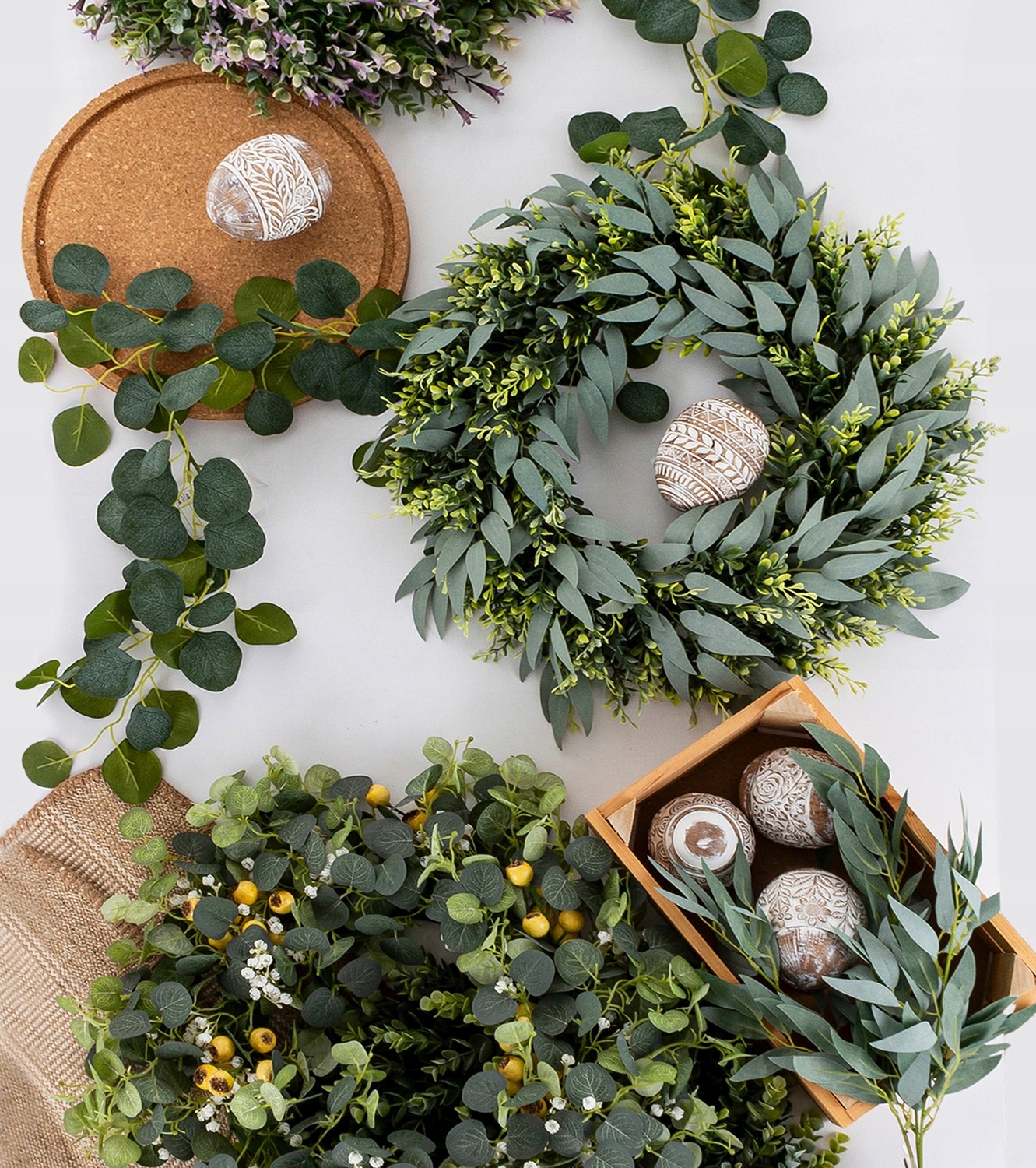 Вінок листя на дверях голова квіти прикраса евкаліпт дика троянда
