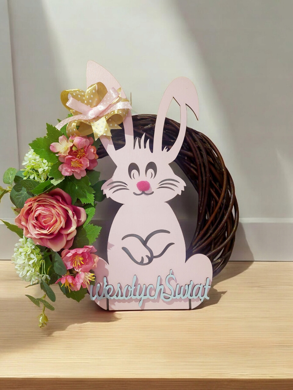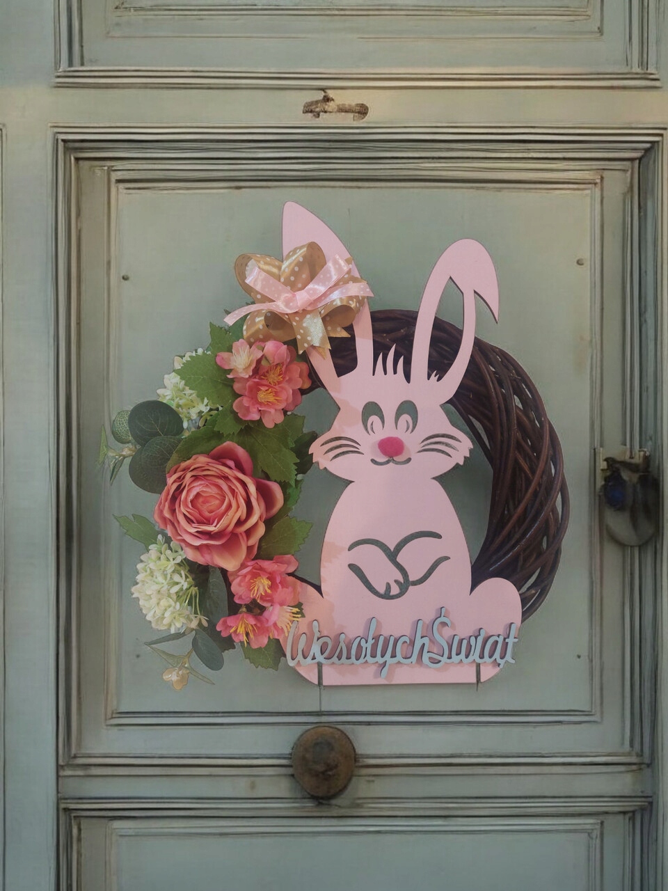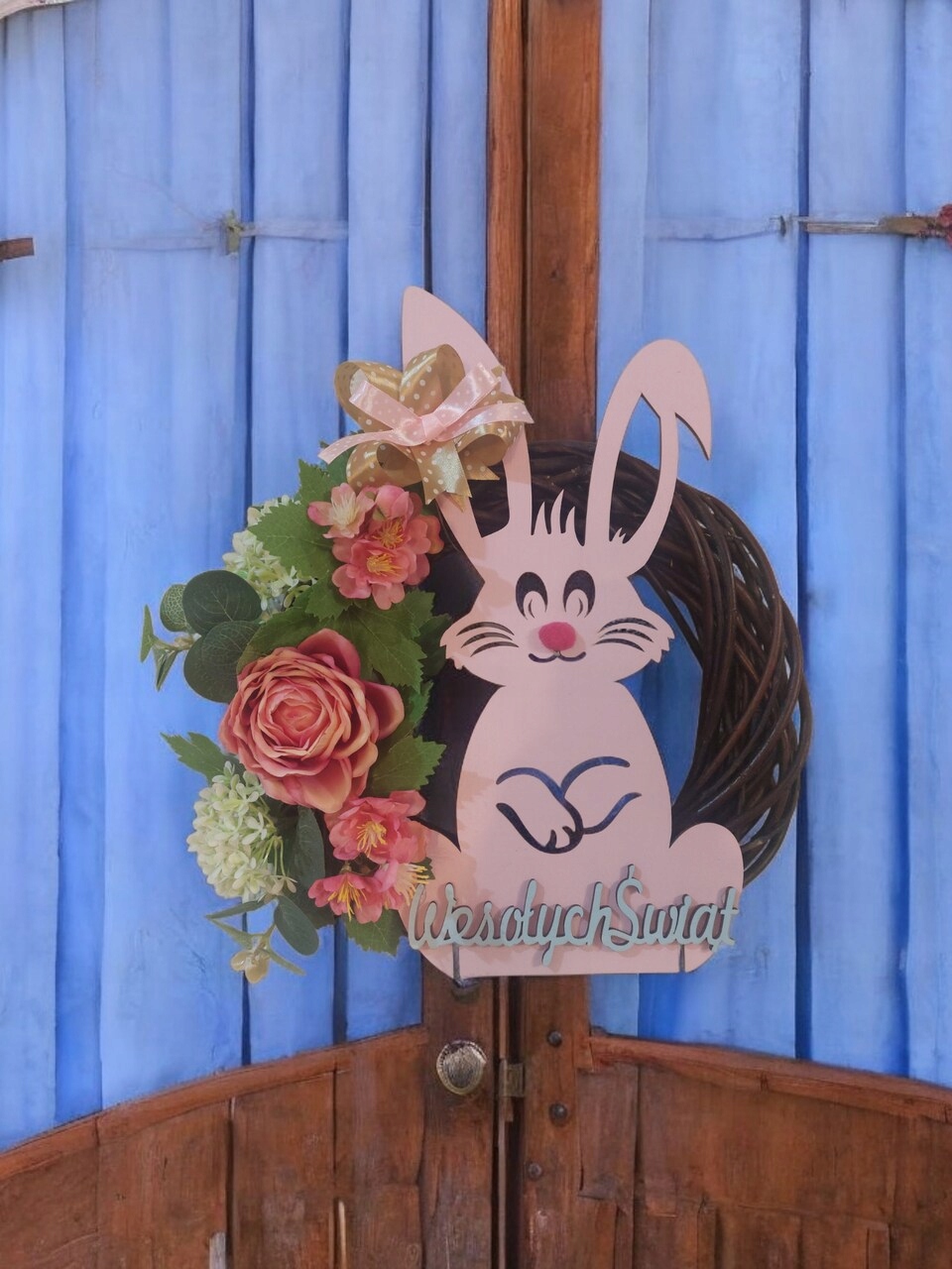 Вінок на дверях Пасхальний Заєць з весняною прикрасою з лука