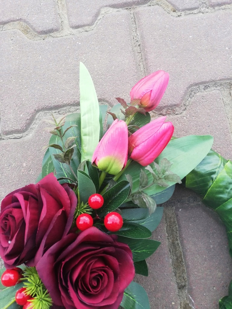 Вінок на могилу, букет квітів, цвинтар, тюльпани