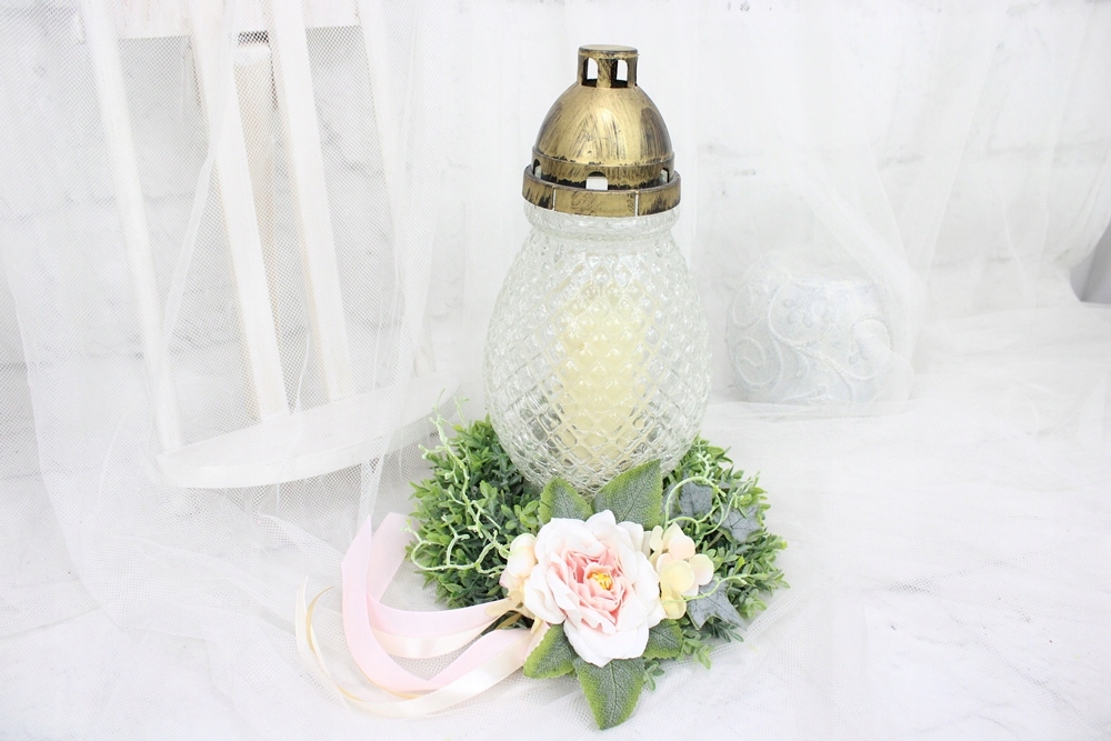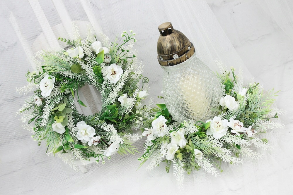 Ніжний і стильний нагробний вінок. Він ідеально підійде як прикраса для свічки.