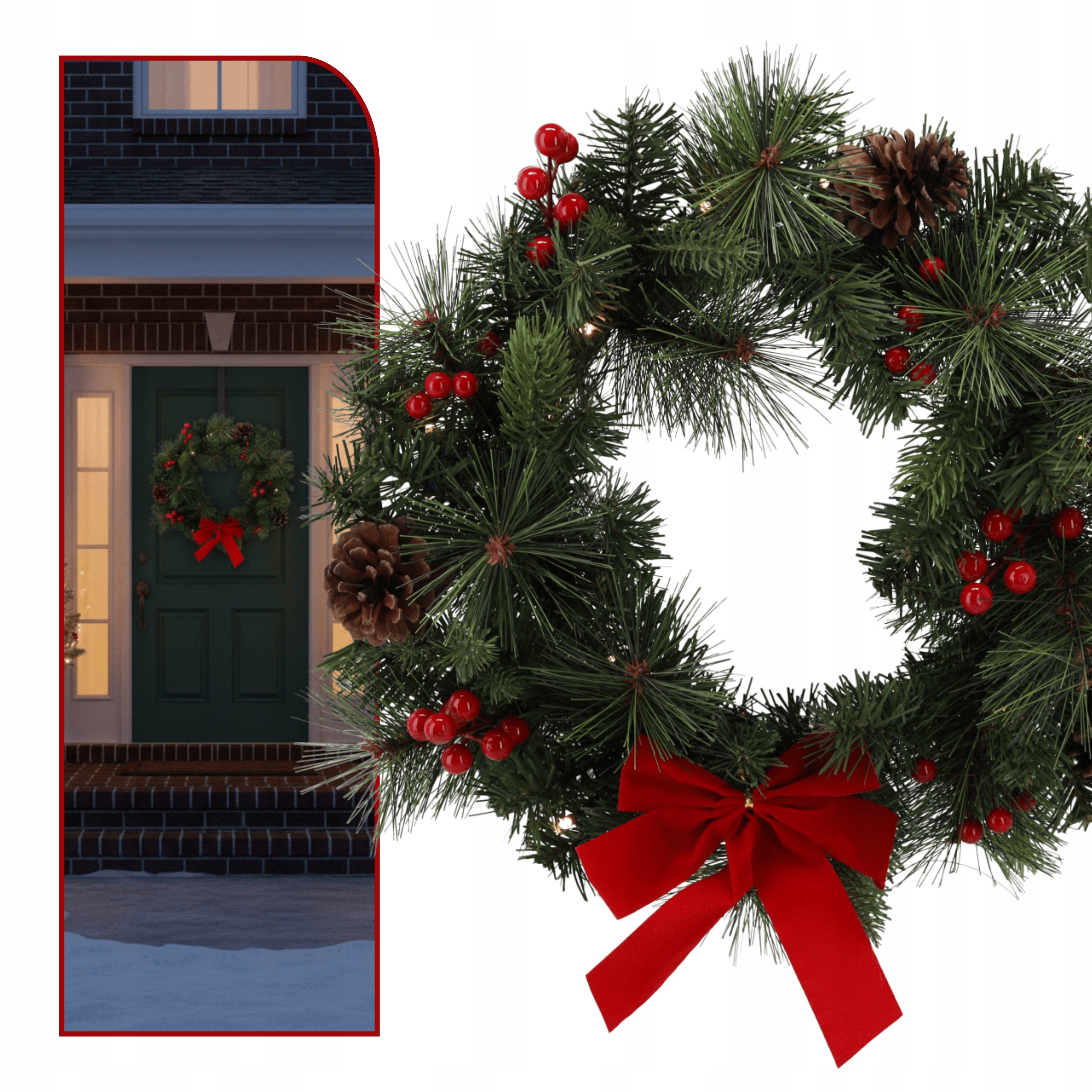 РІЗДВЯНИЙ ВІНОК / ТВОРЕННЯ 40 СМ ЧЕРВОНИЙ| 15 світлодіодів | ДЛЯ ДВЕРЕЙ, СТОЛІВ, ВІКОН | ШТУЧНЕ | ЕЛЕГАНТНА РІЗДВЯНА ДЕКОРАЦІЯ