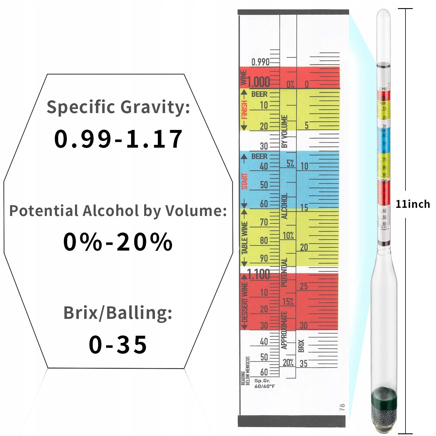 Такий набір сприятиме оптимальному вимірюванню пивного сусла, вина, партій фруктів, сусла.