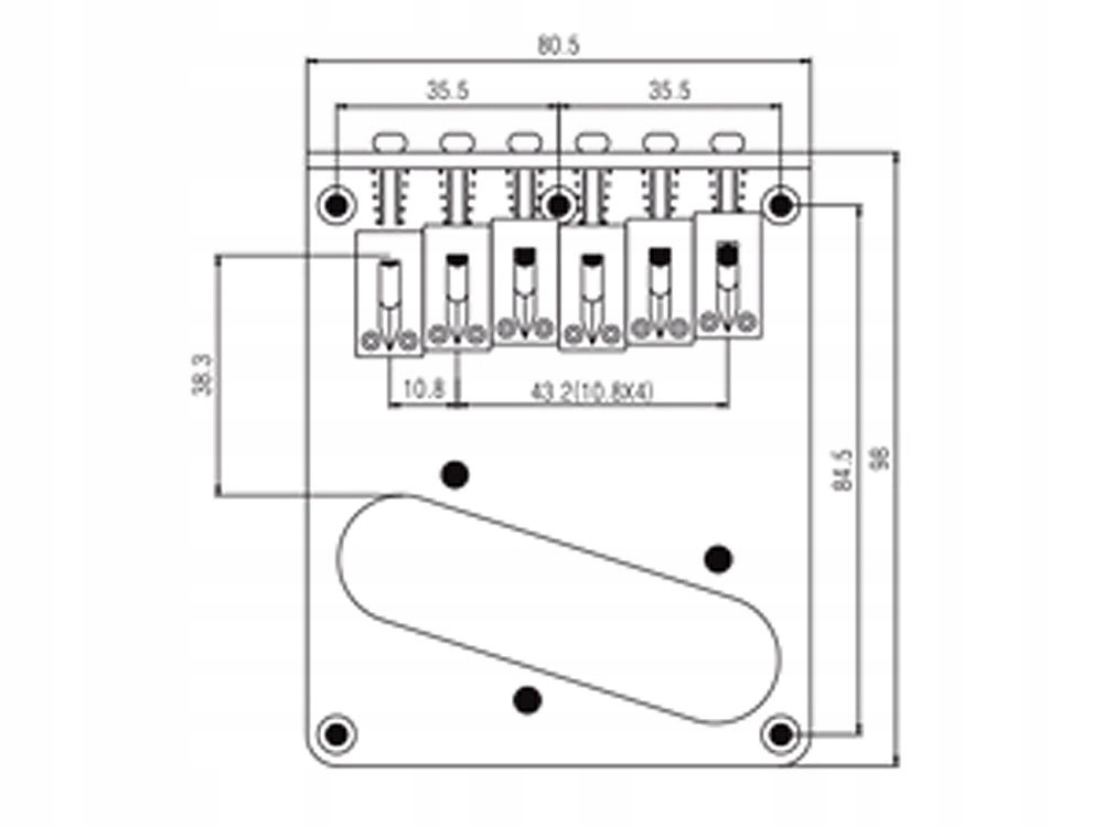 Міцно виготовлений сучасний бридж у формі Т, призначений для встановлення з традиційним однокотушковим датчиком. Струнна установка за допомогою втулок, встановлених в корпусі. Втулки та кріпильні гвинти доступні окремо (гвинти SC2-CR). Розміри на кресленні, що додається.