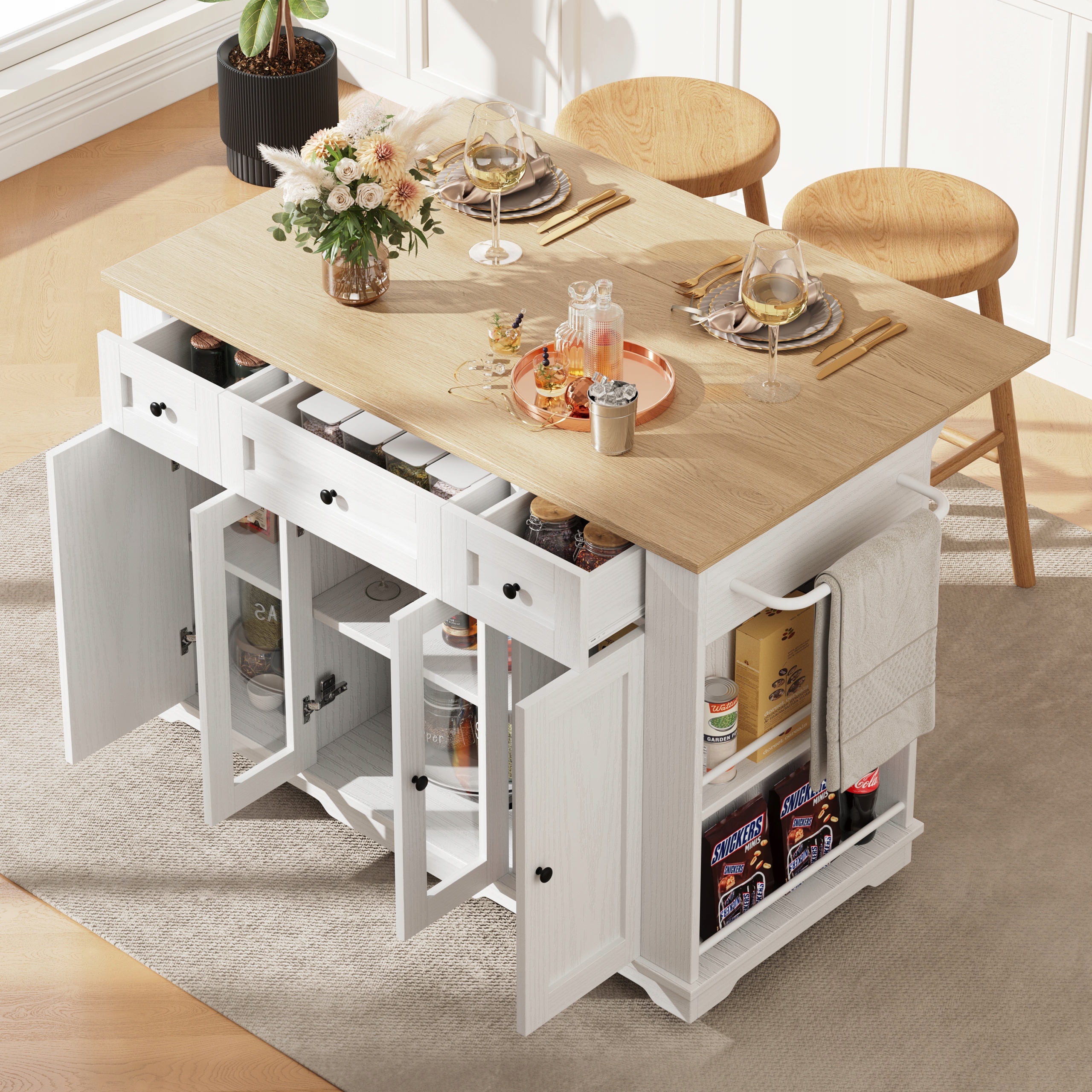 Розміри виробу: Кухонний острів має довжину 151,5 см, ширину 60 см і висоту 91,7 см. Боки цього кухонного візка складаються, щоб ви могли використовувати його як обідній стіл. У розкладеному вигляді загальна довжина сторін 85 см.