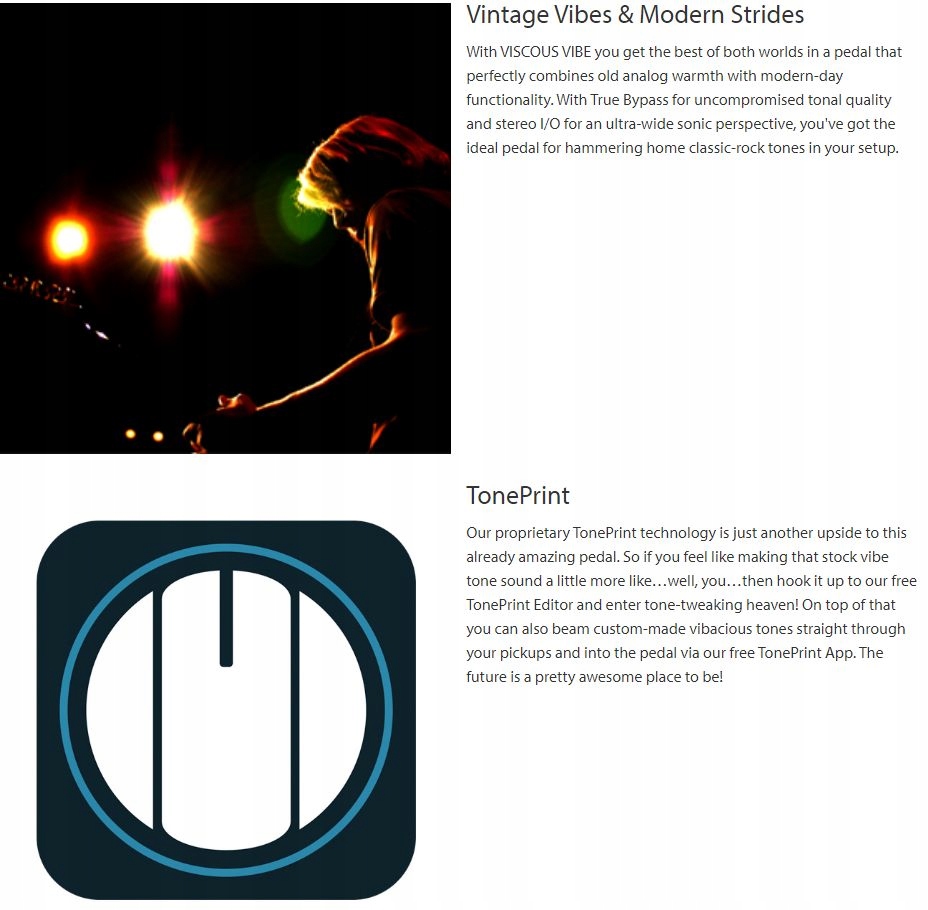 4 Tone Print Швидкісний рамп дозволяє утримувати кнопку обходу, щоб прискорити параметр швидкості (швидкості) Сумісність із програмою Tone Print дозволяє розробити власний ефект або завантажити попередньо встановлений можливість обробляти ефект у стерео конфігурації true> true Обхід компактний, стійкий до пошкодження корпусу живлення під час джерела живлення 9В, що міститься з ефектом, сумісні джерела живлення, доступні на наших аукціонах (TC Electronic PowerPlug 9, D'Addario PW-3VF, Behringer PSU-HSB-All)