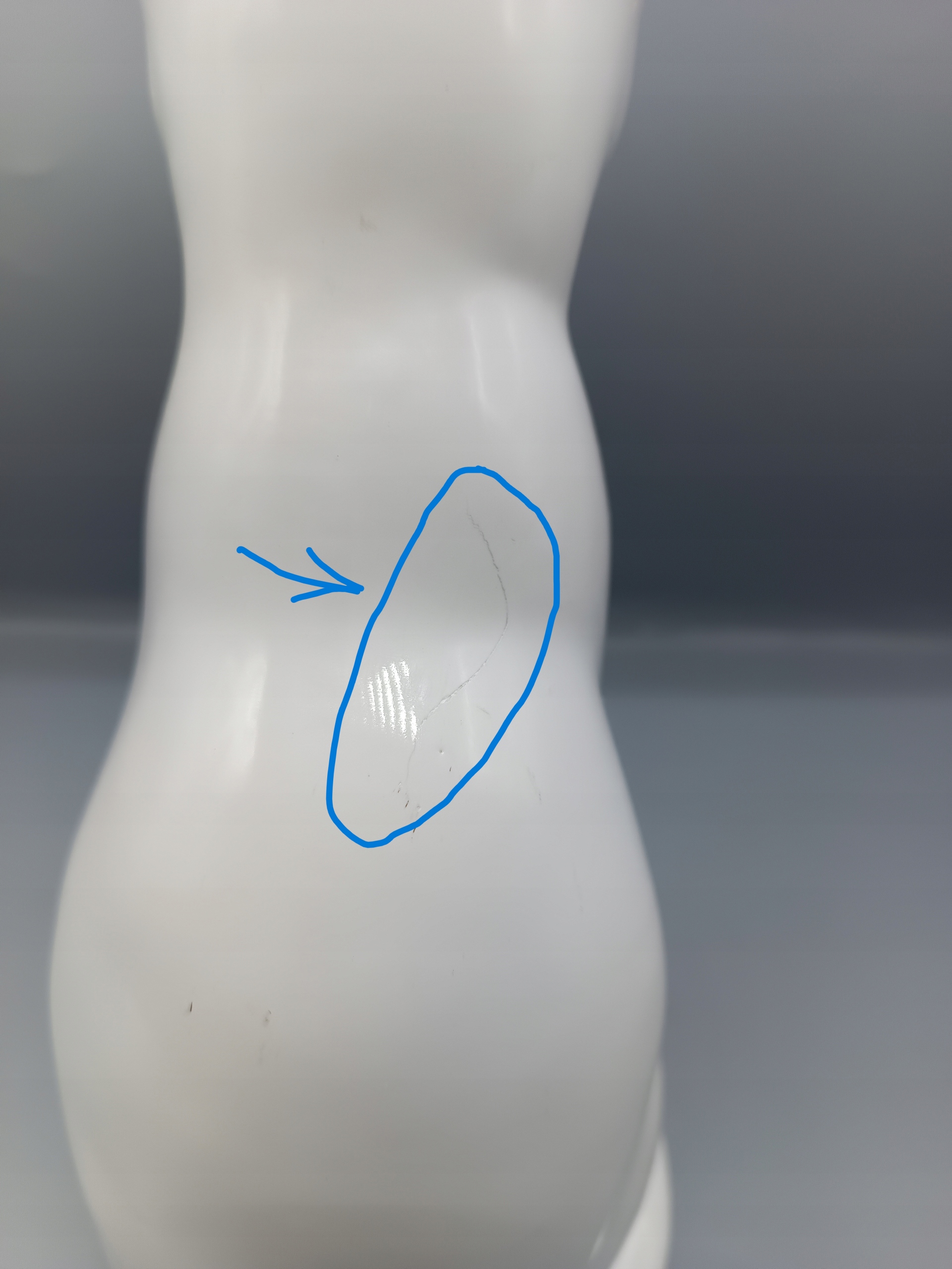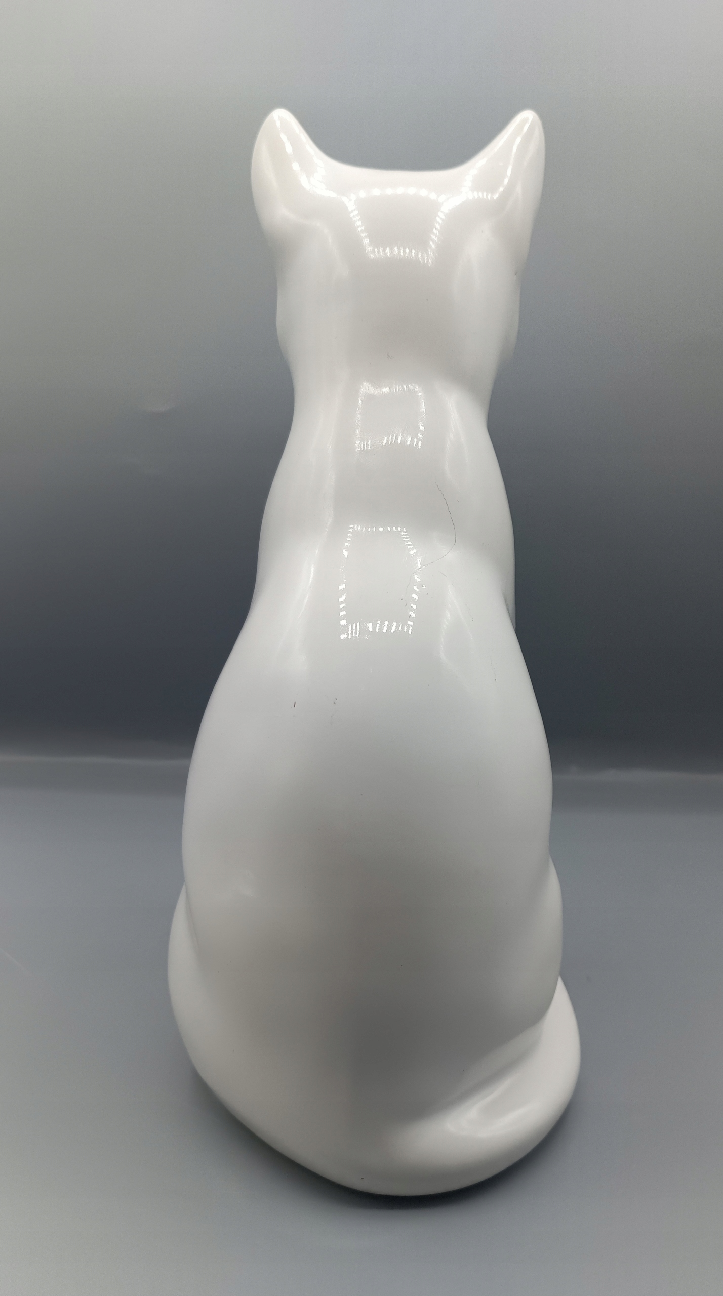 На спині у кошеняти подряпина, ніби гострим нігтем подряпав, тріщини там немає, просто подряпина, я позначила в кружечку синім, це не помітний, але не бездоганний, тому ціна нижча, маю подібний на іншому аукціоні за 125 злотих, з яких я хочу 100 злотих!
