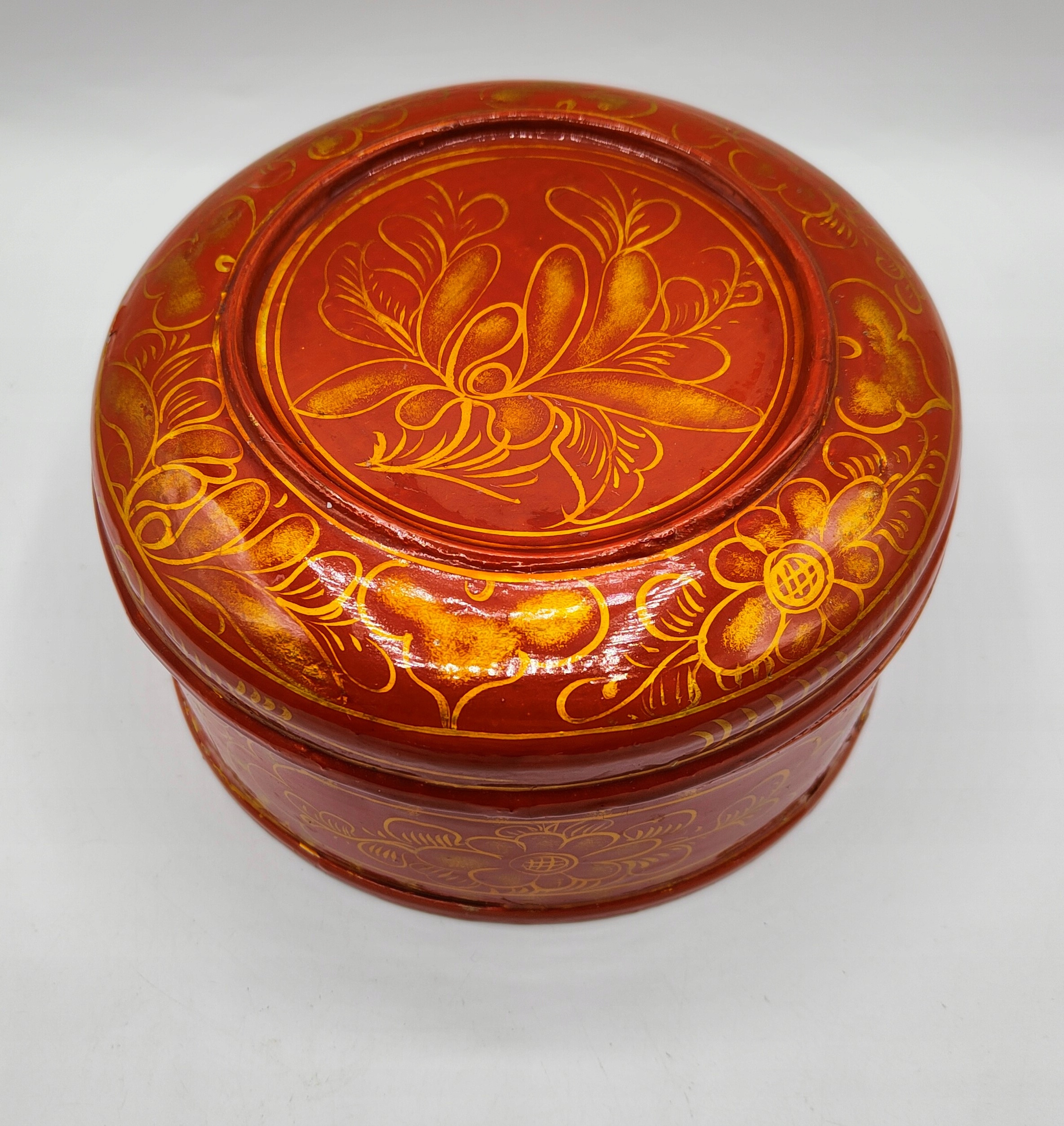 Vintage RĘCZNIE wykonana szkatułka CZERWONA ZŁOTA