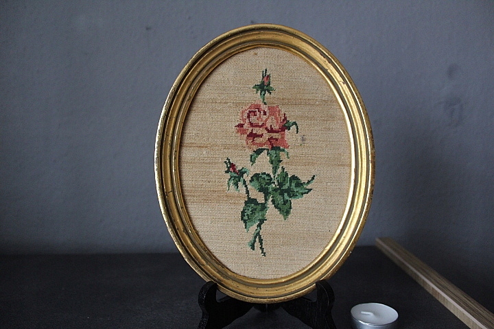 Вінтаж, вишивка, троянда, овальна золота кадр 24/815