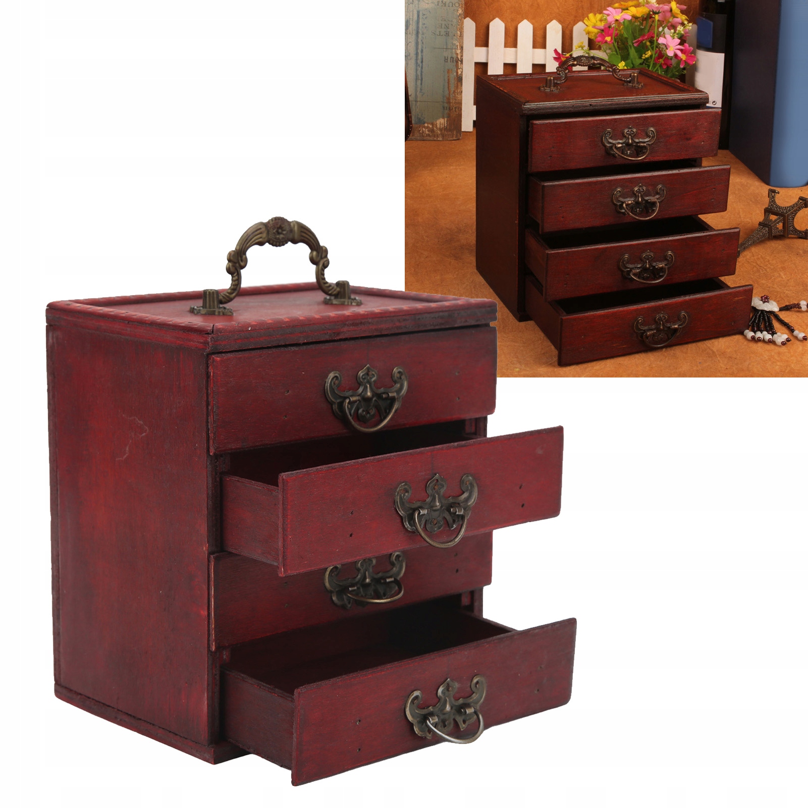 Вінтажна дерев'яна скринька для прикрас, 4-шарова велика шухляда