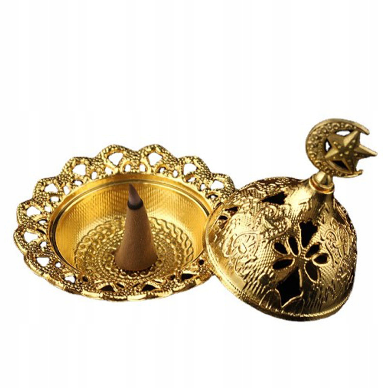 Вінтажна кадильниця, вишукана металева кадильниця для захисту від іржі для спальні, вітальні, золоті місячні зірки