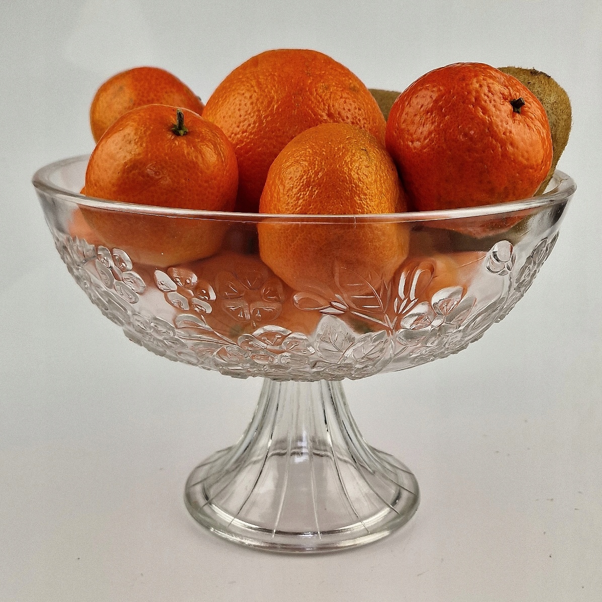 ВИНТАЖНА СКЛЯНА НАЗИВКА / ЧАША НА НОЖЦІ З ФРУКТАМИ