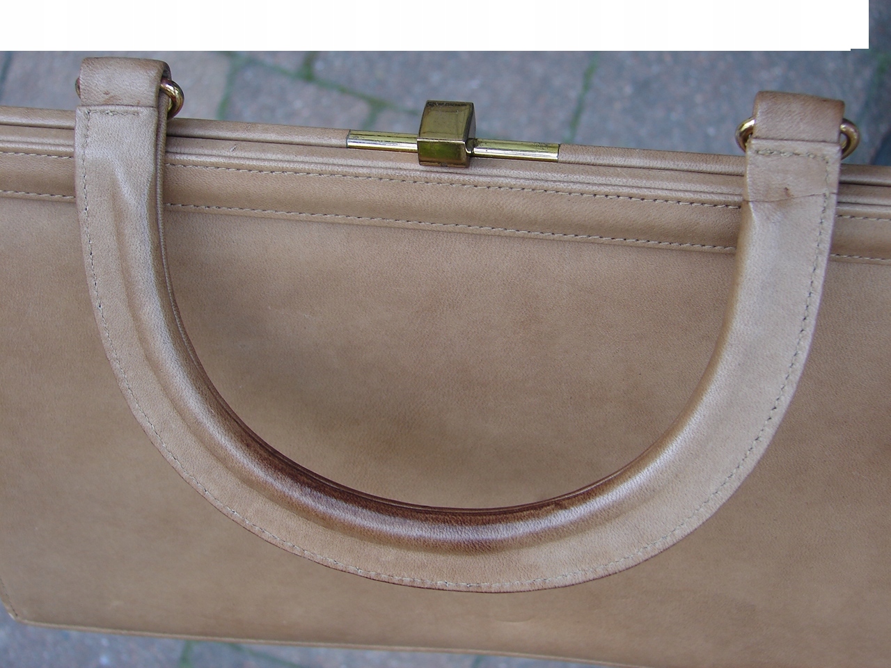 Сумка не має розривів, але має сліди використання у вигляді локального зміни кольору, бруд і локальні вм'ятини. Блискавка та застібки повністю справні.