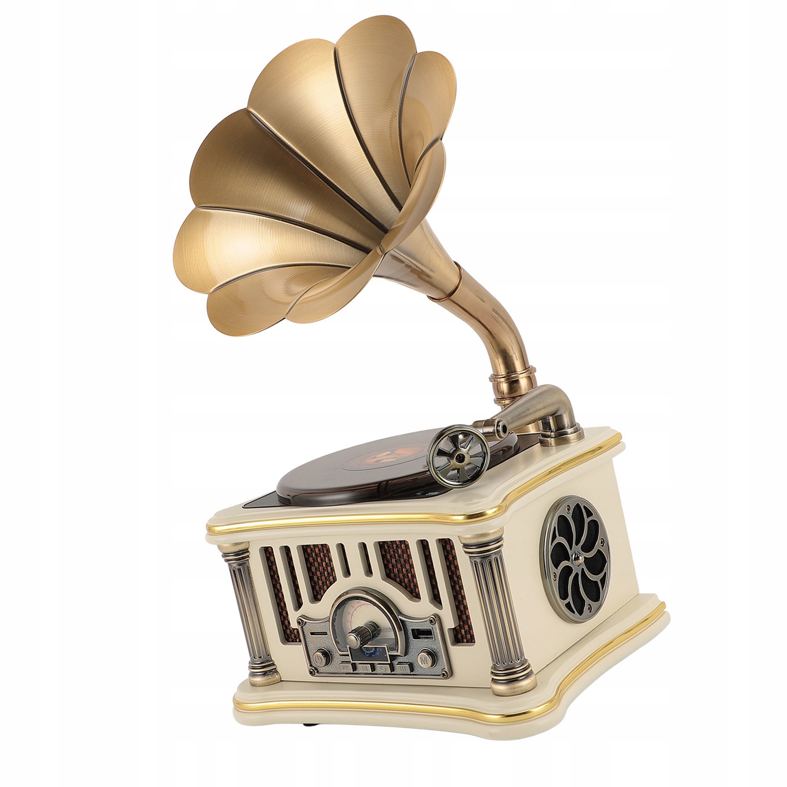 5. Вбудоване FM-радіо: динамік фонографа в ретро-стилі оснащено вбудованим високочутливим модулем FM-радіо, що дозволяє налаштовуватися на улюблені радіостанції. Насолоджуйтесь чудовим звуком під час прослуховування музики та радіо, що робить цей динамік багатофункціональним, щоб задовольнити всі ваші потреби в аудіо.
