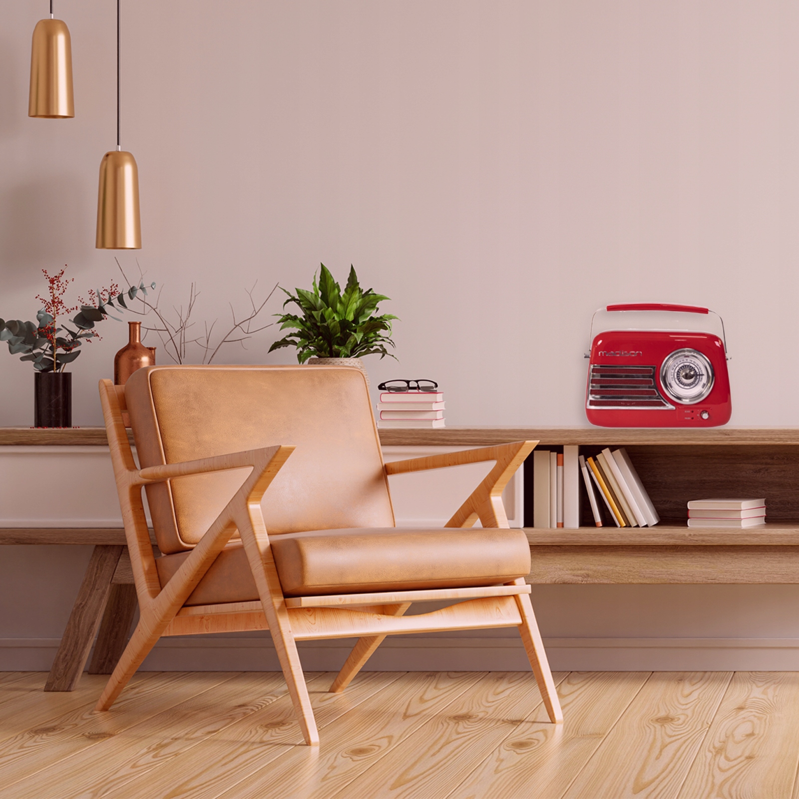 Вінтажне FM-радіо, червоне акумуляторне BT USB