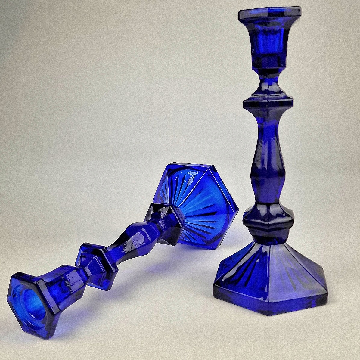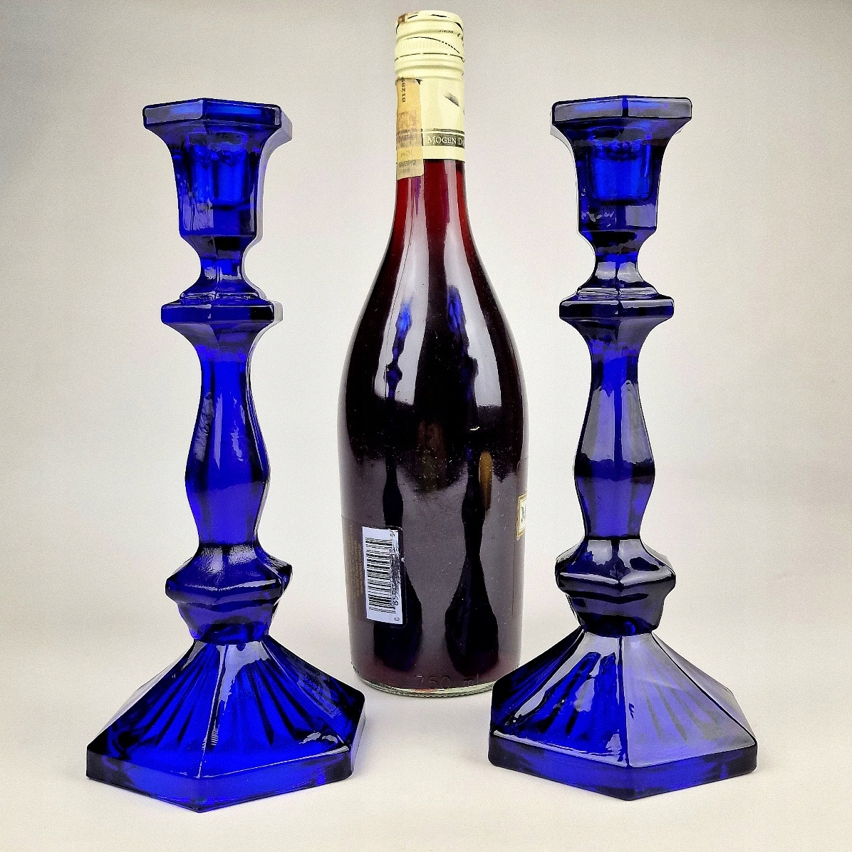 ВІНТАЖНІ ДВІ СКЛЯНІ СВІЧНИКИ / LJUSSTAKAR KOBALT GLAS