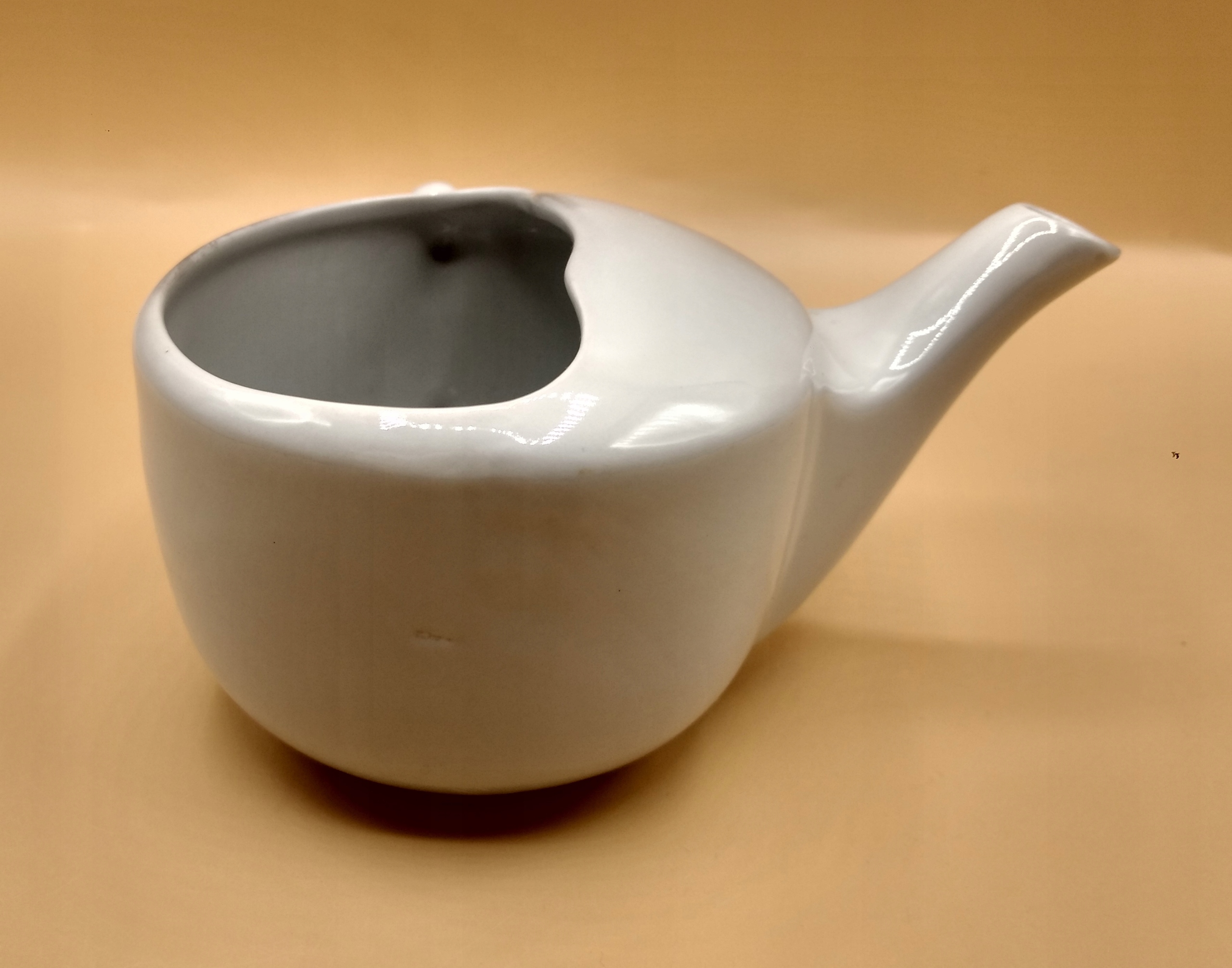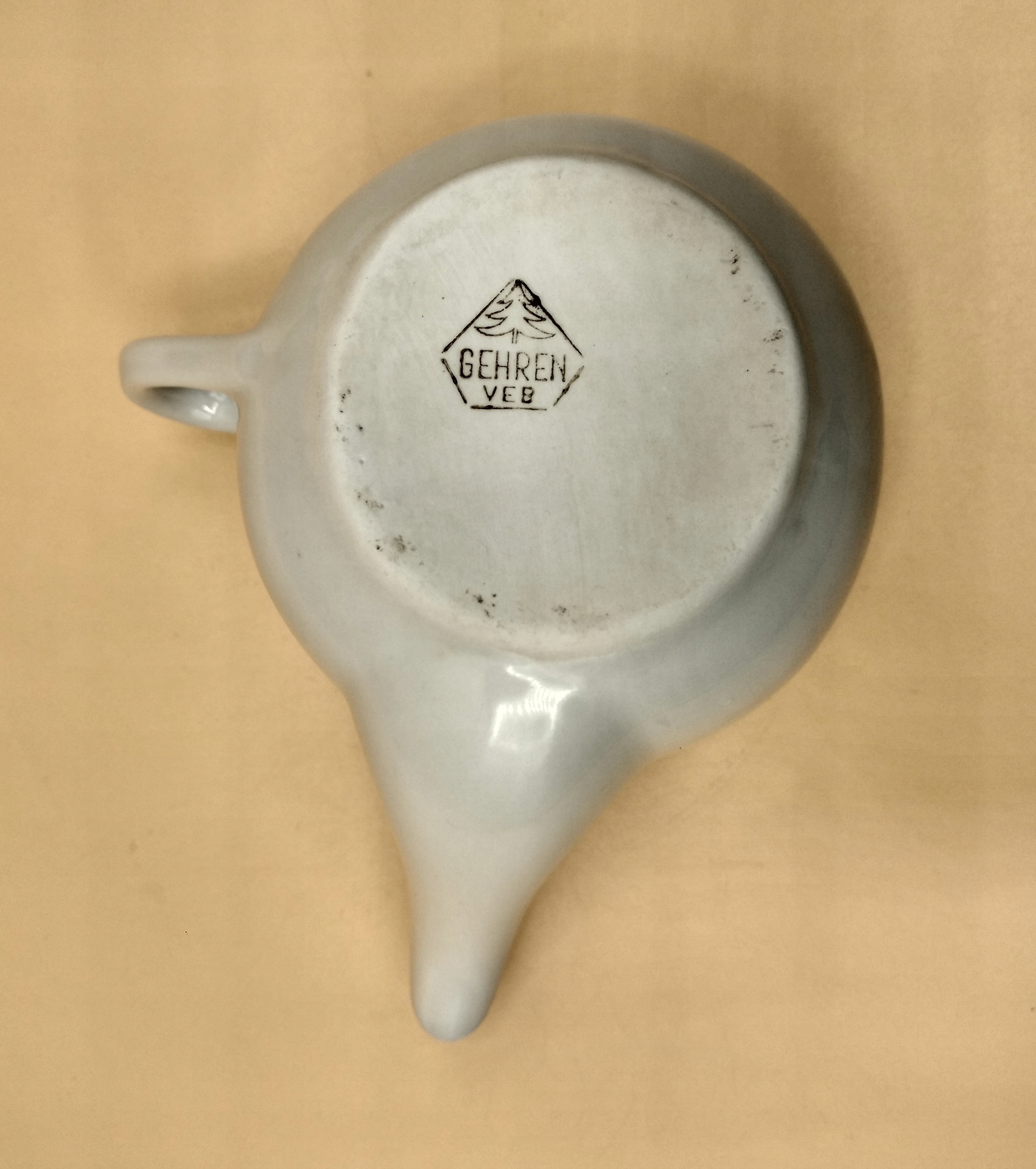 порцеляна. Ємність 300 миль, висота 7 см, ширина з ручкою та носик 13,5 см. На задній панелі є такий сірий виріз, він не брудний, тому контейнер був спалений.