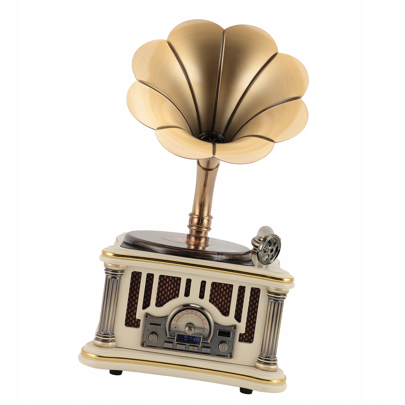5. Вбудоване FM-радіо: програвач у ретро-стилі оснащено вбудованим високочутливим FM-радіо, що дозволяє вам налаштовуватися на улюблені радіостанції. Насолоджуйтесь відмінним звуком під час прослуховування музики та радіо, завдяки чому ця колонка є багатофункціональною та відповідає всім вашим потребам у аудіо.
