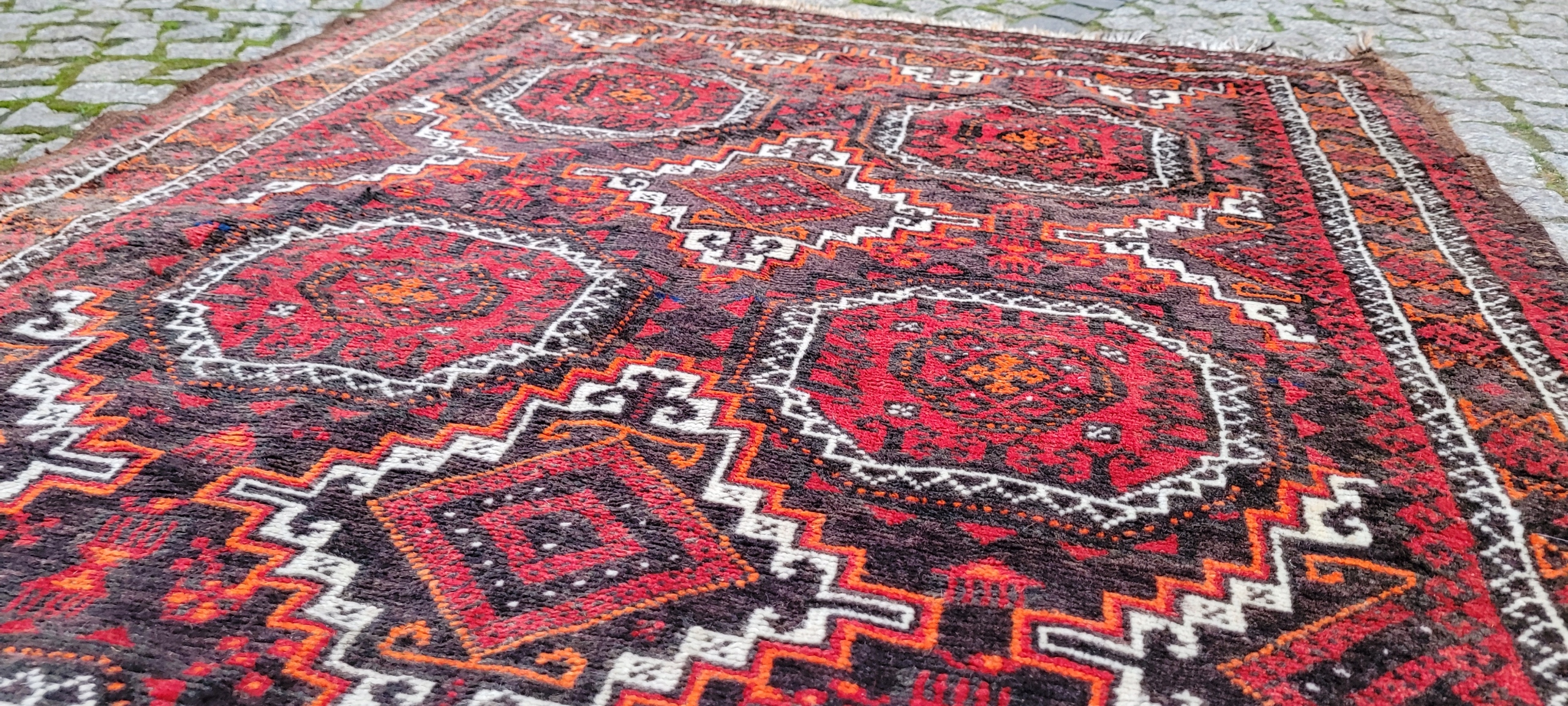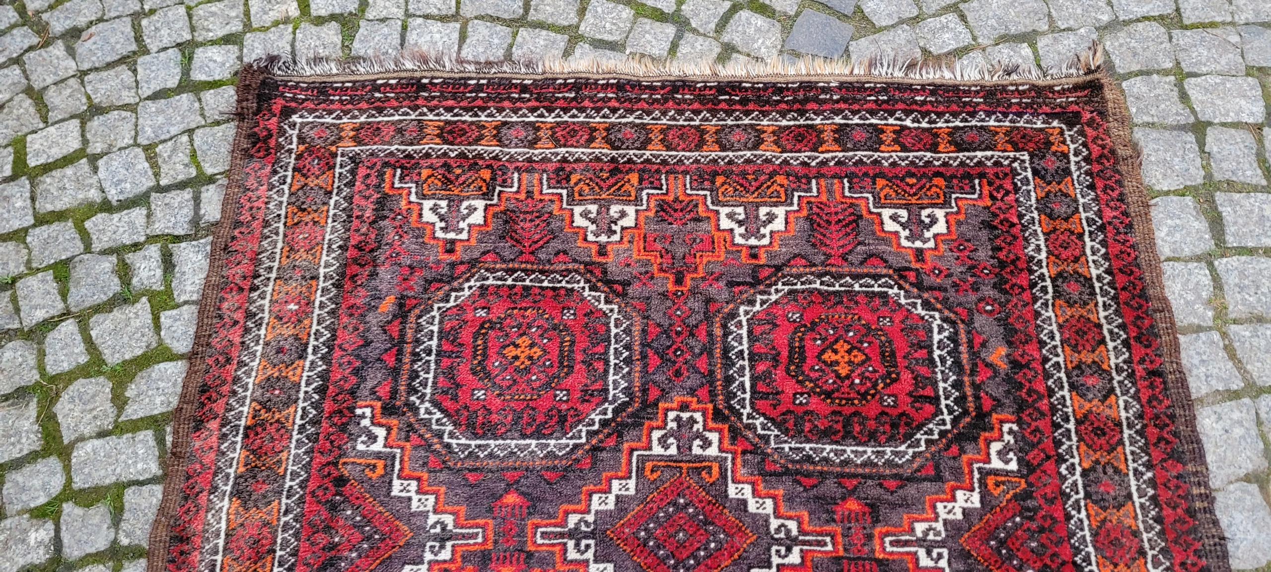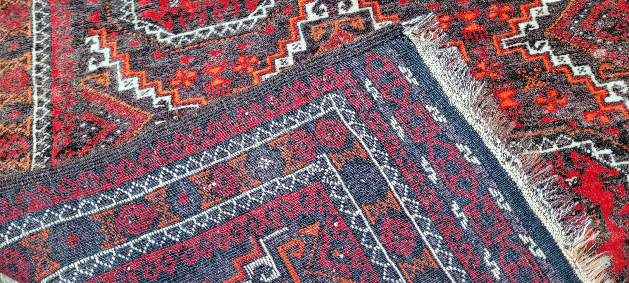 Кочовий килим Beluch. Виткана вручну з вовни найвищої якості. Характеризується щільним флісом і красивими кольорами та візерунками. У хорошому стані, видно на фото.
