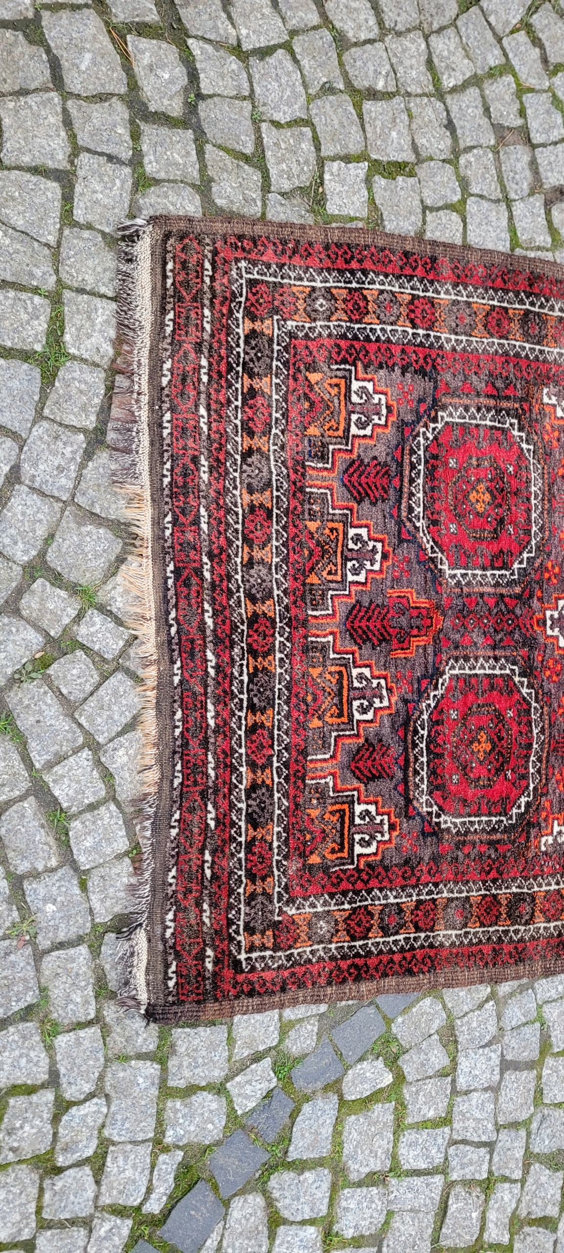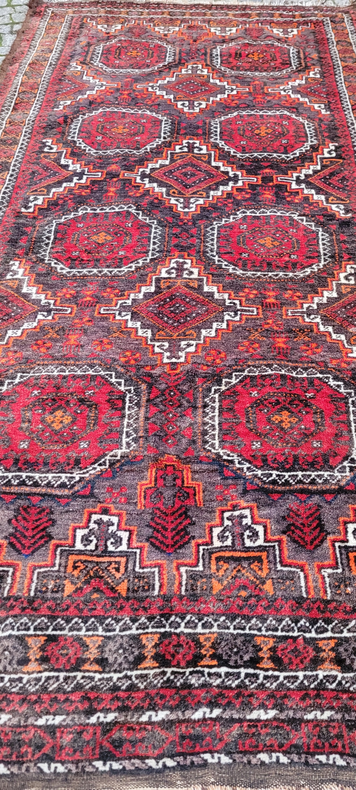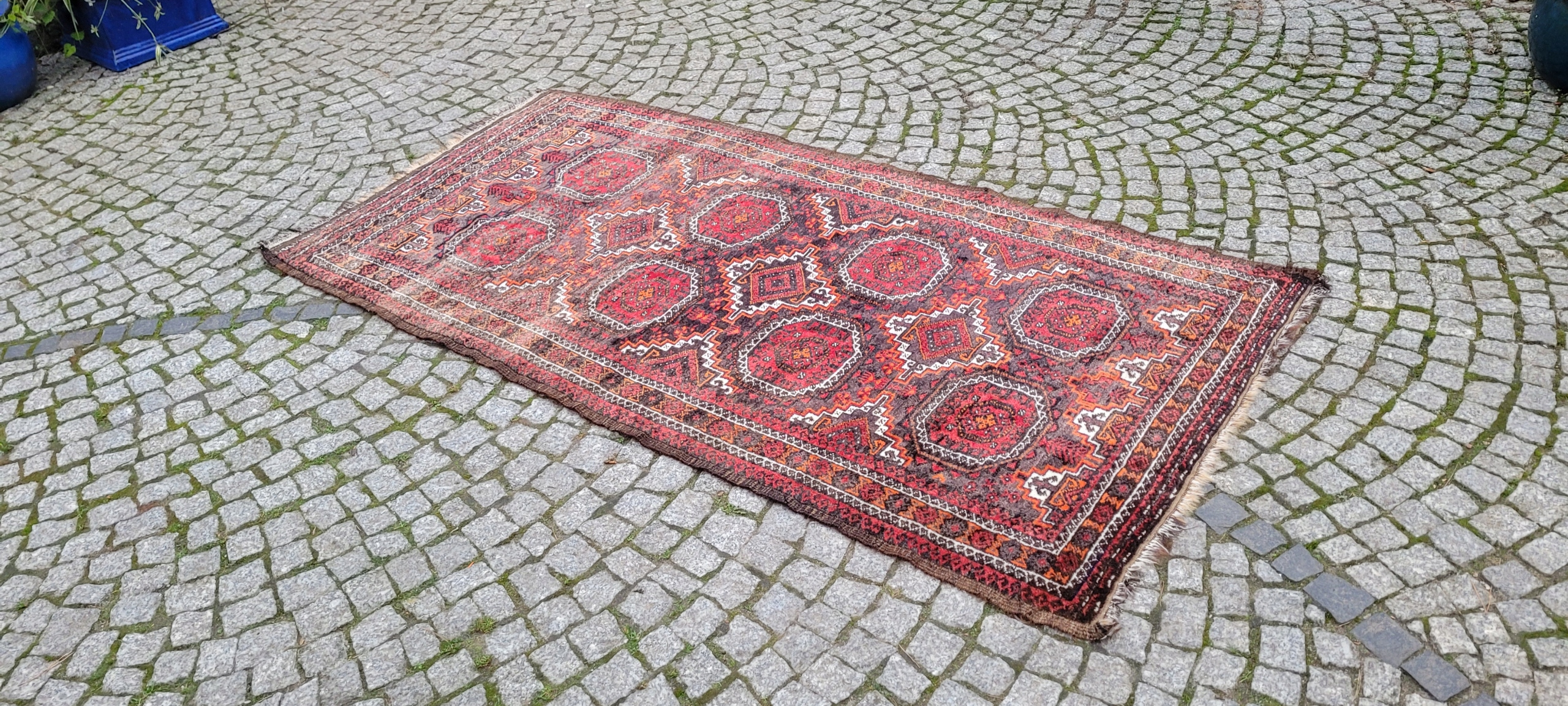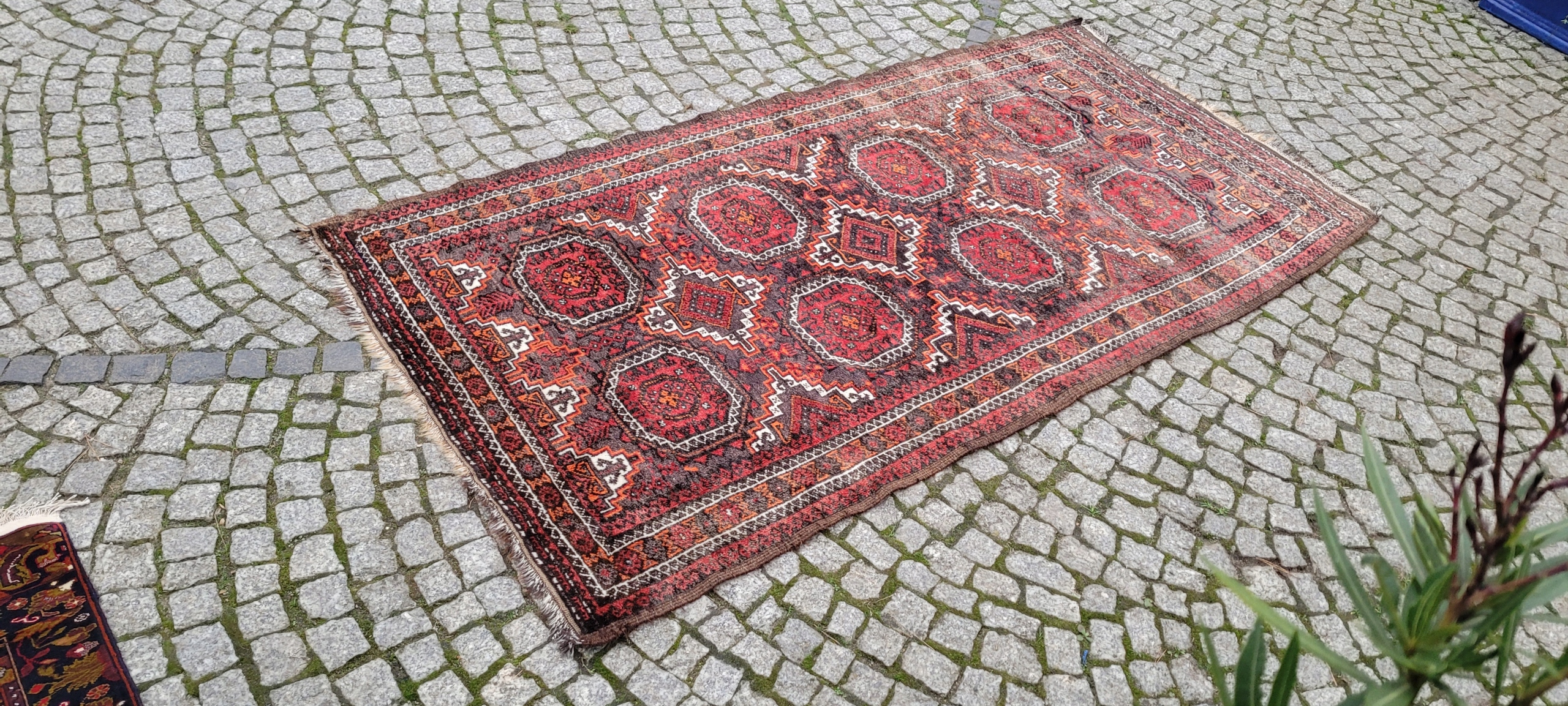 Кочовий килим Beluch. Виткана вручну з вовни найвищої якості. Характеризується щільним флісом і красивими кольорами та візерунками. У хорошому стані, видно на фото.