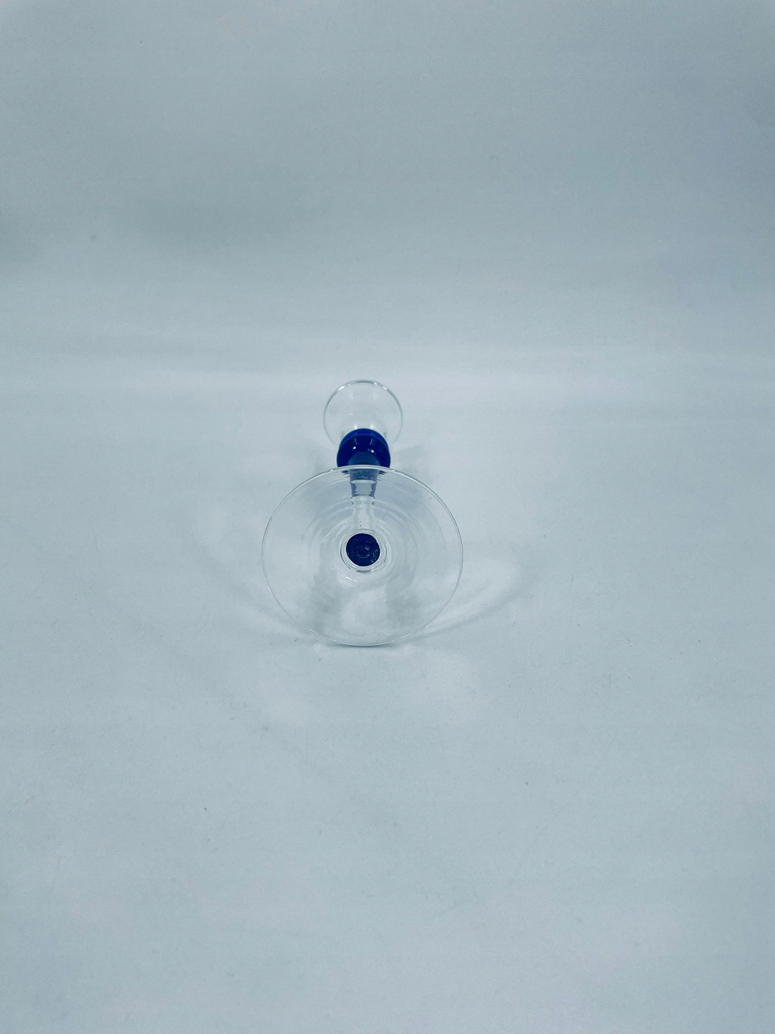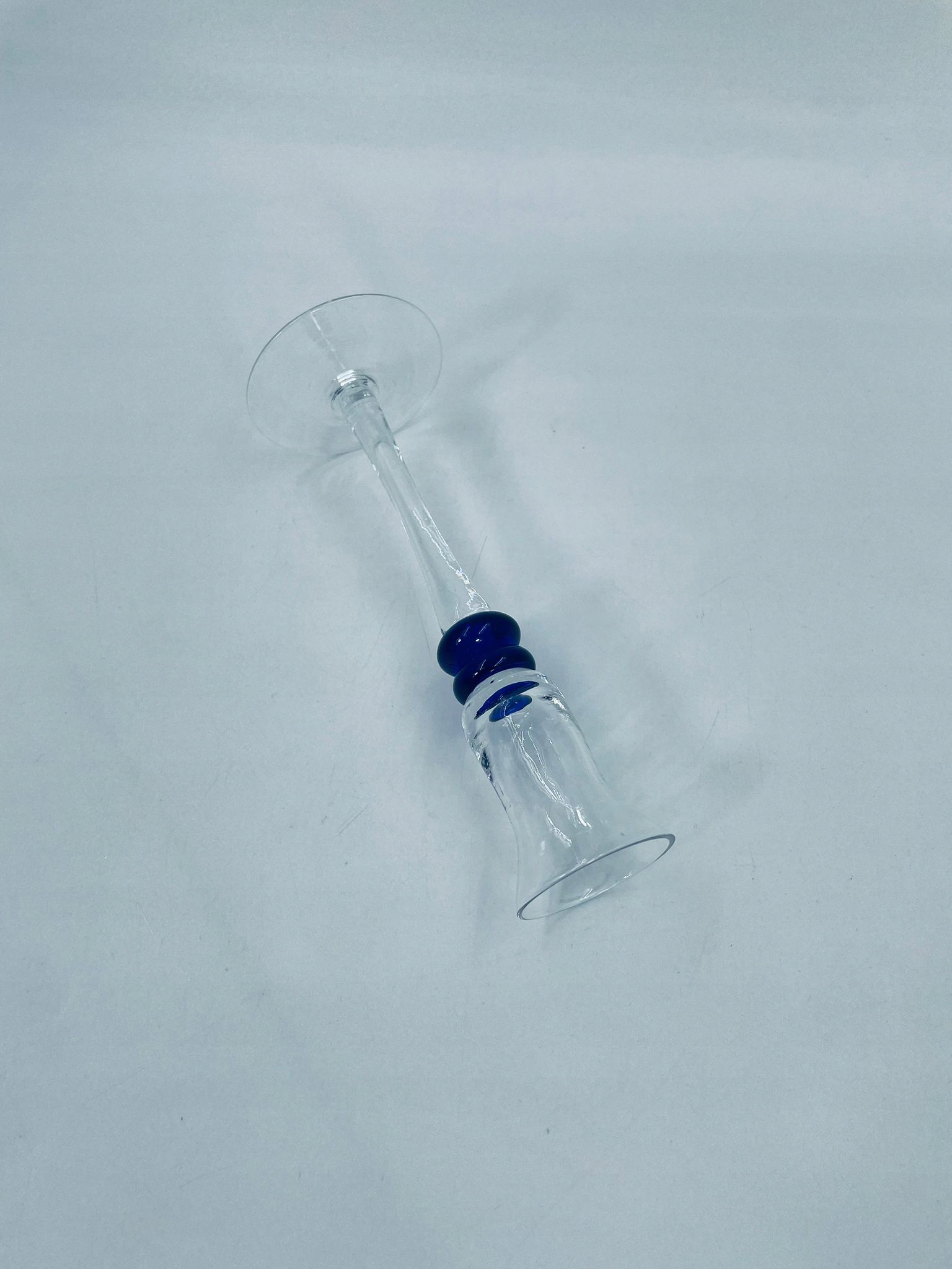 Набір свічників Vintage Memphis Milano, виготовлений з високоякісного художнього скла. Підсвічники характеризуються тонкою подовженою ніжкою з декоративними елементами з кобальту у верхній частині, трохи нижче чашки.